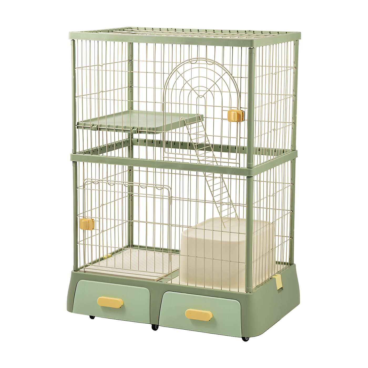 上下に動き回る活発な猫に!底面トレーは引き出せて掃除が楽