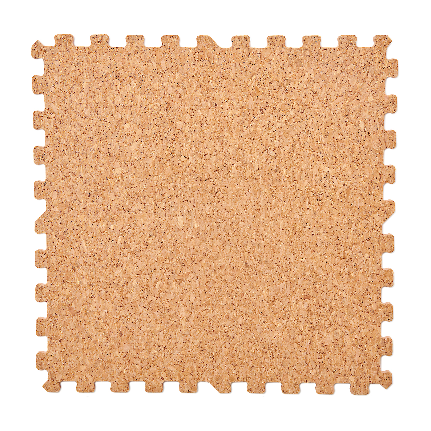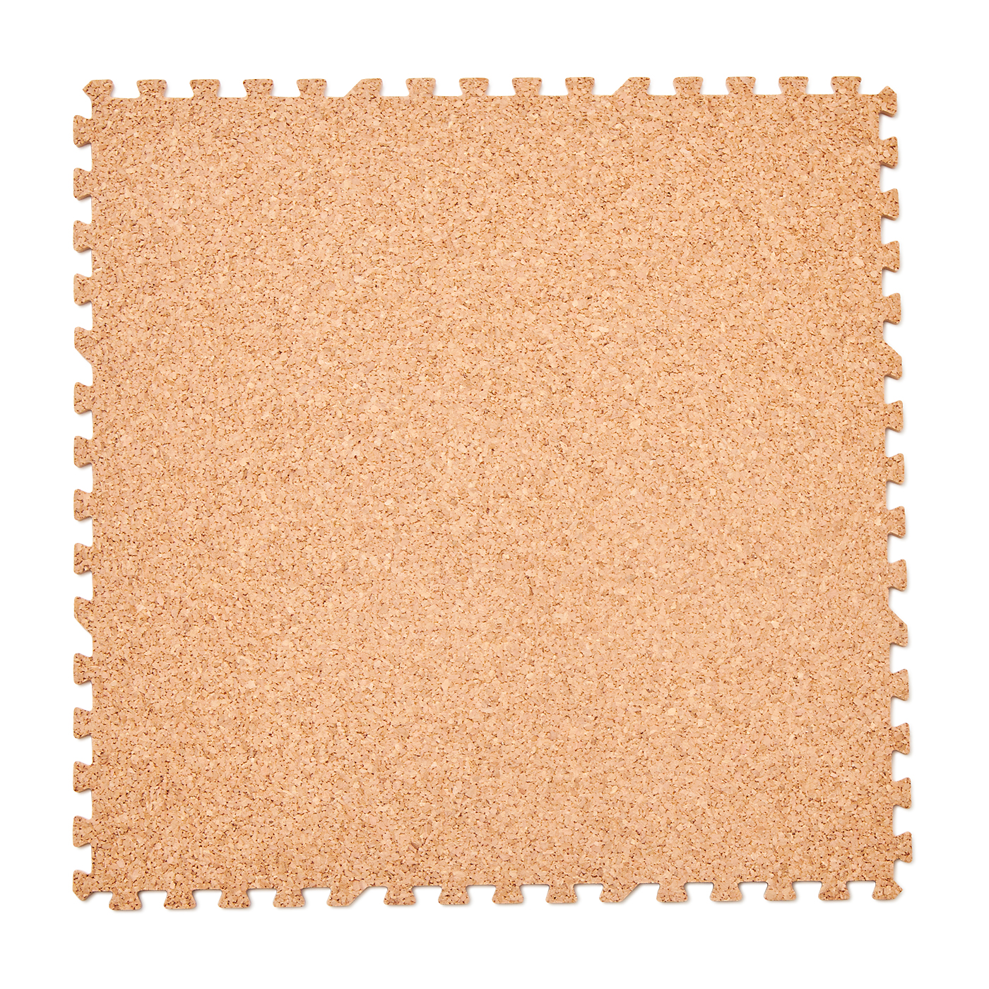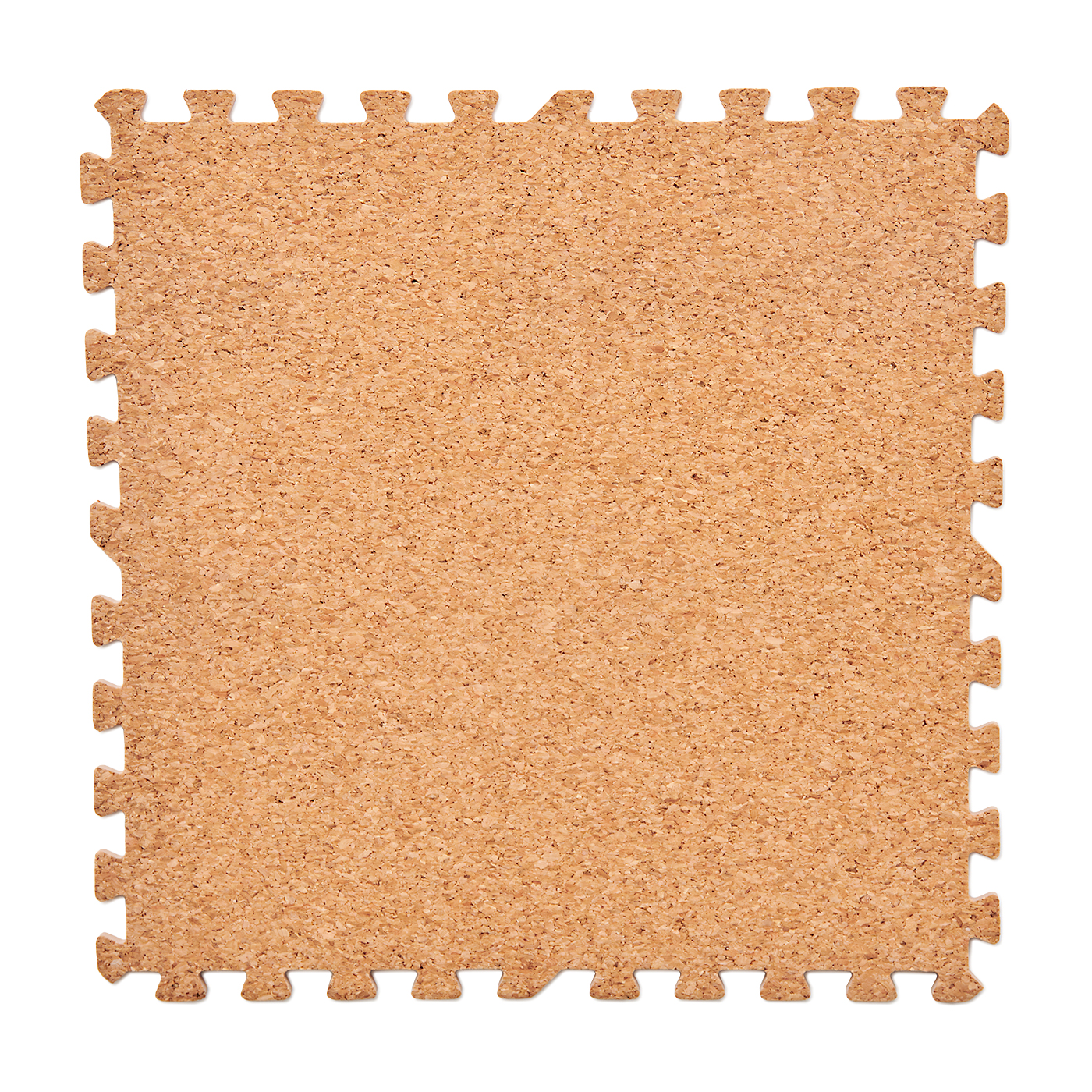 アウトドア用品や家具・インテリアを取り扱うWEIMALLを運営するWEIWEIホールディングスの「コルク ジョイントマット」。国内検査機関による耐熱性試験をクリアしており、床暖房に対応しています。重りを落としたときの騒音は平均約74dBと比較的小さめで、フローリングの上に重りを落としたときよりも衝撃を吸収できていました。厚さも8mmと比較的厚く二重構造で、表面を簡単に押し込めるやわらかさがあるため、クッション性はまずまずといえます。表面はコルク材で触ると少しざらつきを感じました。滑りにくさの検証では傾斜を約28度つけるまで上に乗せた木材が滑り出さなかったため、とても滑りにくい素材であるといえるでしょう。しかし裏面の素材にはEVA樹脂が使われていて固定していないとずれやすく、激しい動きや衝撃でずれたり接続部分が外れたりする可能性があります。コルクは爪や歯が食い込みやすい素材なので、傷や欠けた跡が残りやすいところが難点。しかし汚れにくさの検証で掃除機を1往復かけたところ、抜け毛を完全に吸いきれました。疑似尿をかける検証でも5分後からコルクの香りが不快臭を和らげ、2時間後には尿臭がわからなくなったため消臭力にも期待が持てます。