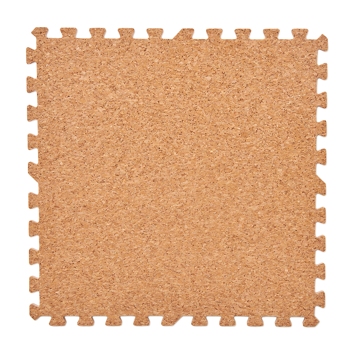 関東を中心に実店舗を展開している、大手ホームセンター・カインズの「サイド・コーナー付きジョイントコルクマット」。付属パーツを使えば壁面までぴったり敷き詰めることができるので、隙間にゴミやほこりがたまりにくいと謳っています。重りを落としたときの騒音は平均約74dBと比較的小さめで、フローリングの上よりは衝撃を吸収できていました。厚さも8mmと分厚く二重構造でもあるうえ、重りを落としたときに表面がしっかり沈み込んでおり、クッション性はまずまずといえるでしょう。表面はコルク材で触ると少しざらつきを感じました。滑りにくさの検証では、傾斜を約29度つけるまで上に乗せた木材が滑り出さなかったため、とても滑りにくいといえます。しかし、裏側にはポリエチレン樹脂が使われていて固定しないとかなりずれやすく、マットごと滑って転倒する可能性もあるため注意が必要です。全体的にやわらかく爪や歯が食い込みやすいので、傷や欠けが目立つところも難点といえます。しかし汚れにくさの検証で掃除機を1往復かけたところ、抜け毛を完全に吸いきれた点で高評価。疑似尿をかける検証でも、5分後から2時間後までコルクが尿の不快臭をしっかり軽減していました。