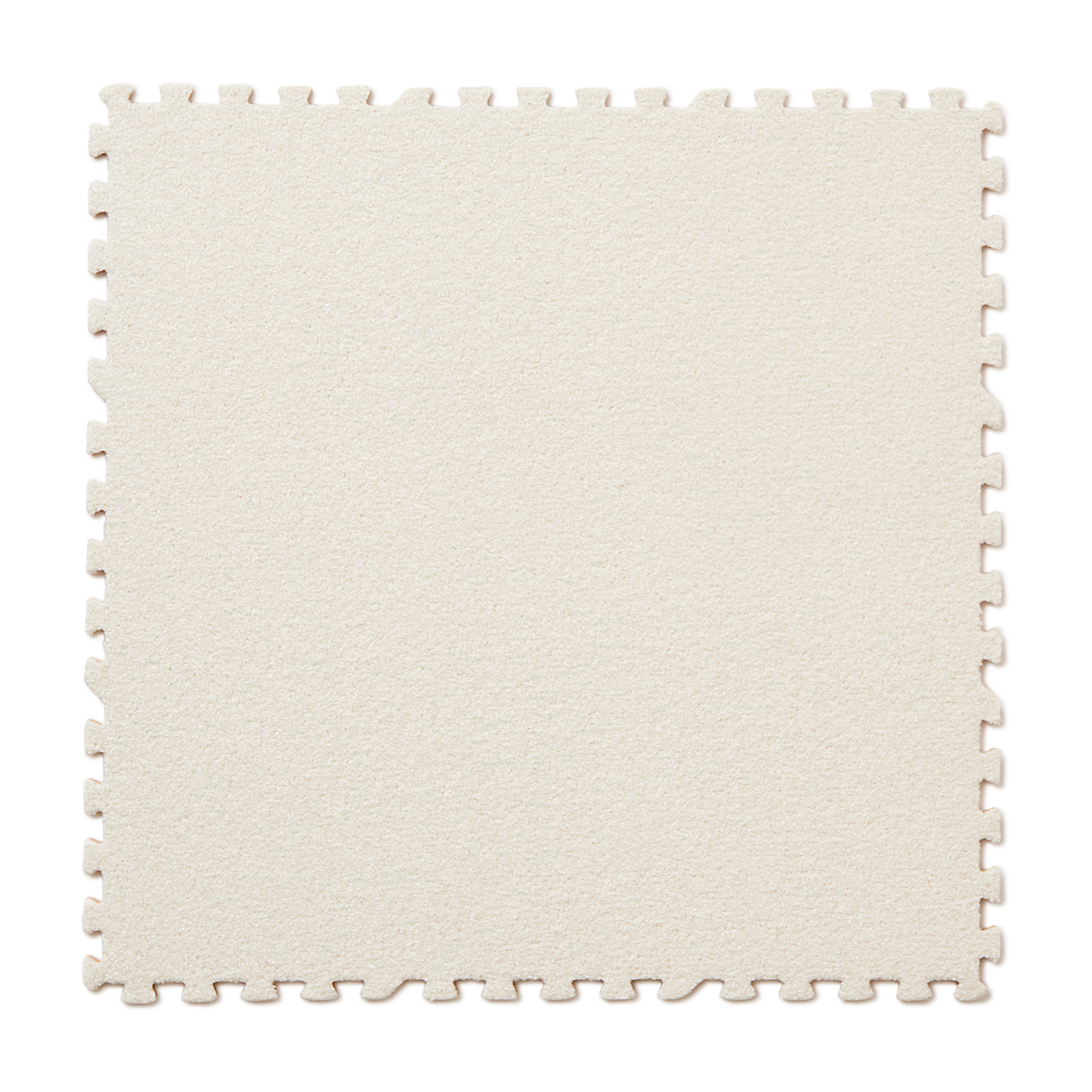 家具・インテリアの販売を行う大手メーカー・ニトリの「洗える やわらか起毛のジョイントマット」。ハサミでのカットが可能なので、部屋のサイズに合わせてぴったりと敷き詰められるところが特徴です。重りを落としたときの騒音は平均約62dBで、土の上と同じくらい衝撃を吸収した点が好印象。厚さは8mmと比較的厚く、二重構造であるためクッション性は高いといえます。犬の体への負担を軽減し、足腰にやさしい環境を提供できるでしょう。表面はポリエステルで絨毯のような起毛素材です。滑りにくさの検証では傾斜を約17度つけただけで上に乗せた木材が滑り出したため、かなり滑りやすい印象を受けました。また、裏面の素材に使われているポリエチレン樹脂もずれやすく、部屋全体にぴったり敷き詰めないとマットごと滑って転倒する可能性があるといえます。一方、表面はカットパイルで犬の爪が引っかかりにくく、ほつれや遊び毛が出にくいところはうれしいポイント。汚れにくさの検証で掃除機を1往復かけたところ、抜け毛を全部吸いきれました。しかし、尿をかけると5分後から2時間後まではっきりとにおいがわかった点で評価を下げました。
