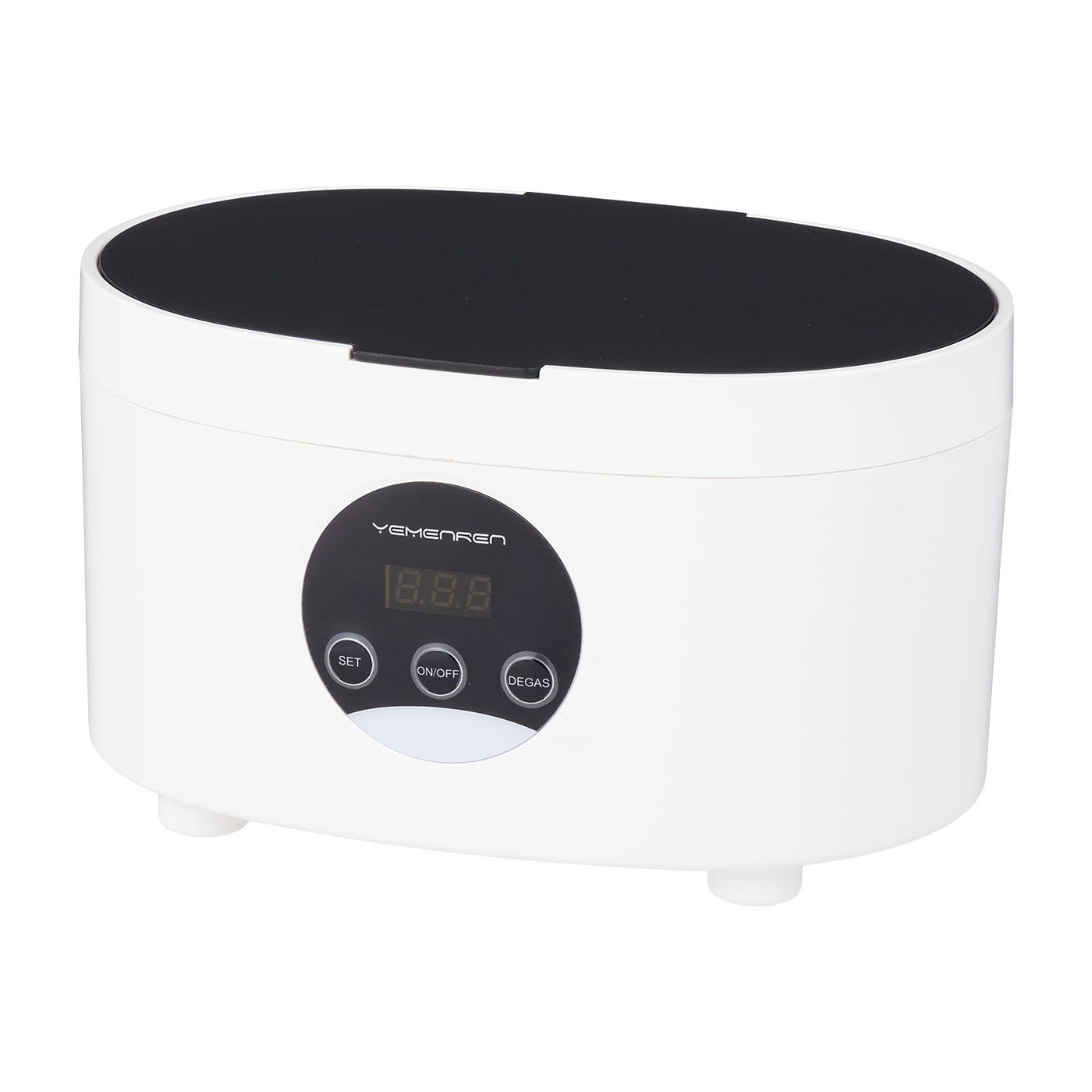 YEMENRENの「超音波洗浄機」は、めがねについた皮脂汚れをしっかり落としたい人におすすめ。見た目はシンプルで、どんな部屋にもインテリア感覚で置けそうなデザインです。洗浄力の高さを検証したところ、めがねの皮脂・プラモデルのパーツについた削りカスはきれいに落ちました。一方、入れ歯の黄ばみやアクセサリーの黒ずみは、洗い流すまでに時間がかかります。落ち具合にも物足りなさを感じる可能性があり、小物を幅広く洗浄したい場合には不向きでしょう。排水のしやすさも上位層にはおよびません。フタは固定できて動きにくいものの、本体から離せないため慣れるまでは手入れに時間がかかりそうです。コードを本体から引き抜けない点も気になりました。洗浄容器の容量は473mLと十分な大きさ。全体引き上げ用のカゴや小物を入れるためのアタッチメントが付属しており、めがねや腕時計など基本的なアイテムの洗浄には対応できるでしょう。排水の手間は気になりますが、めがねの洗浄力を重視するなら選択肢のひとつに挙げられる1台です。