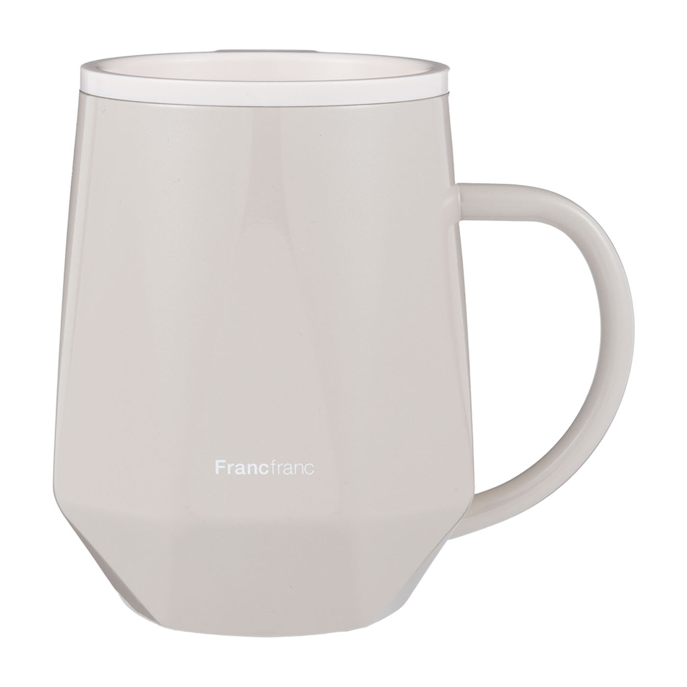 Francfrancの「フタ付き ステンレスサーモマグ」は、カップのデザインにこだわりたい人におすすめ。ダイヤのようにキラキラとしたデザインで目を惹くうえに、保温・保冷力の高さにも期待できます。保温力はトップクラス。70.1℃のお湯を入れてから室温で3時間放置しても、中身の温度は25.3℃しか下がりませんでした。映画やドラマを観ながら、じっくりとコーヒーを飲みたいときにもぴったりです。冷水を入れて3時間放置したあとの中身の温度は6.4℃しか上昇しておらず、保冷力も申し分ありません。実際に飲む動作をしても飲み口から0.1gしかこぼれず、フタをして倒しても中身は少ししか漏れませんでした。精密機器の近くなどでは使わないほうが無難ですが、落ち着いて飲めば周囲を濡らすことはほとんどないでしょう。保温・保冷力にすぐれているうえデザイン性も高く、おしゃれな雰囲気が作れるアイテムです。眺めるだけでも気分があがるため、ギフトとしても喜ばれるでしょう。