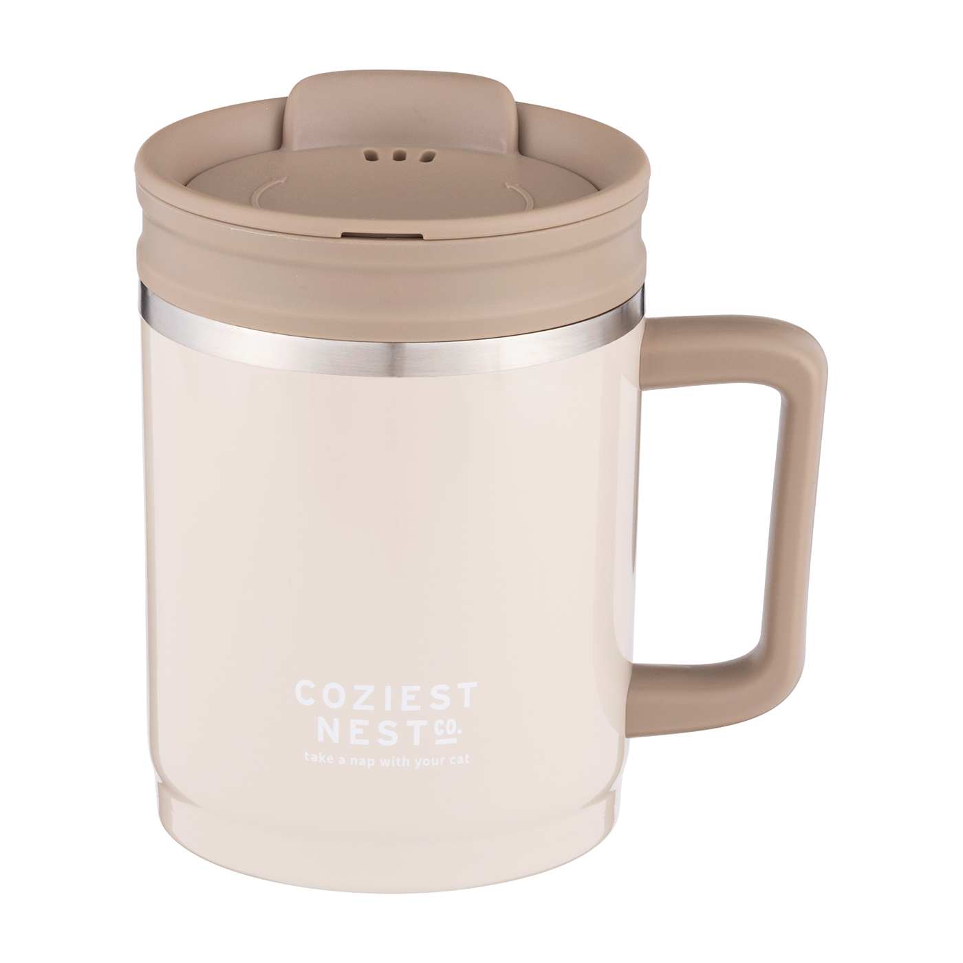 GrandTiesの「プレミアムマグカップ」は、大容量のマグカップを探している人ならまず検討してほしい商品。容量は460mLとコーヒーショップのMサイズが余裕で入るサイズなので、長時間作業のお供にぴったりです。フタがついているので保温・保冷力が高く、飲んでいる最中に中身がこぼれる心配もありません。保温力の高さはかなり満足できるレベル。70.2℃のお湯を入れてから室温で3時間放置したところ、中身の温度は27.3℃しか下がりませんでした。入れたばかりと比べれば少し冷めているものの、十分温かさを感じられます。保冷力もトップクラスで、冷たさをしっかりとキープ。冷水を入れて3時間放置したあとの中身の温度は、7.1℃しか上昇しませんでした。また、倒してもフタを閉じていれば中身がまったく漏れません。オフィスや家のなかでも気軽に持ち運びやすいでしょう。すぐれた保温・保冷力でこぼれにくいうえ、19色ものカラーバリエーションがあるのも魅力のひとつ。その日の気分に合わせて、アイス・ホットどちらの飲み物も楽しみたい人は、真っ先にチェックしてください。