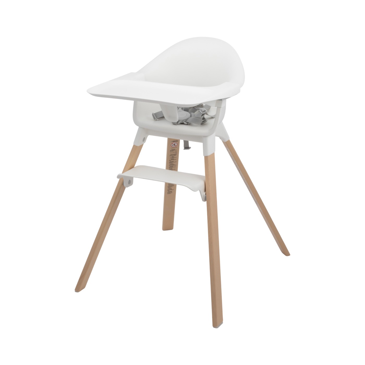 Stokkeの「クリック」は、北欧風のシンプルなデザインが特徴。ダイニングチェアとしても使用できる赤ちゃん向けのハイチェアです。対象年齢は6か月~3歳頃で、カラーは4種類を展開しています。安全機能の充実度の検証では、両肩・両腰・股を支える5点式ベルトに加え、股ガードも装備されており、子どもが立ち上がったり抜け出したりする危険を防ぎやすいということがわかりました。座面や脚ははめるだけの構造ながら、大きくズレにくく安定感はおおむね良好でしょう。食器がおけるテーブルが付属しており、背もたれの高さは26.3cmとまずまず確保されています。姿勢を崩しにくいため、食事中の安全性と快適性を両立しやすいといえるでしょう。活発に動く子どもにも使いやすく、食事中の安全性を重視する人に適した商品です。5点式ベルトと股ガードによる高い安全性に加え、シンプルな構造ながら倒れにくい設計が魅力といえます。日常的に使いやすく、子どもの安全を第一に考える人に向いている商品です。