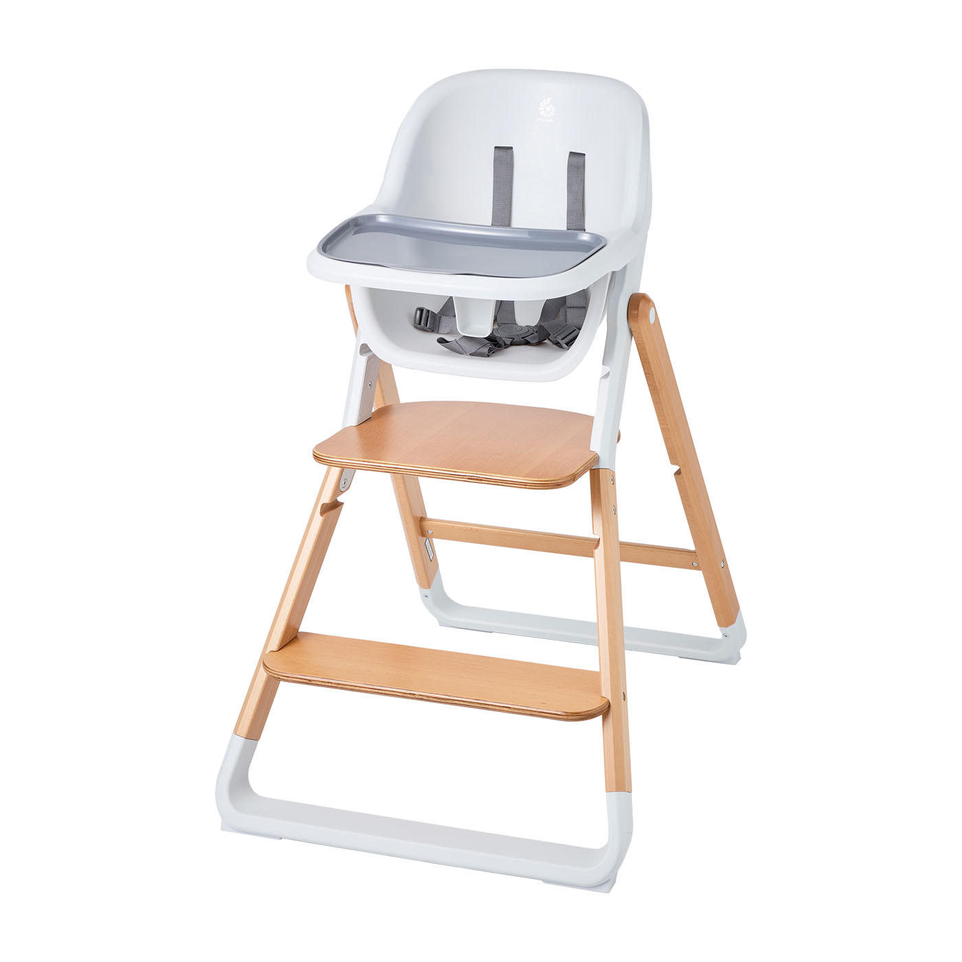 Cybexの「レモ 3-IN-1」は腰の据わった生後6か月頃から大人まで使用可能なハイチェア。コンパクトな北欧風のデザインが特徴で、耐荷重は約95kgです。安全機能が充実しており、5点式ベルトと股・おなかガードが子どもをしっかりホールドする仕様です。立ち上がりや抜け出しのリスクを軽減できるので、子どもが動いても安心して使用できるつくりです。座面と脚はフレームと一体化しており、ガタつきにくい設計です。また、後方に強く押しても簡単には倒れず、比較した商品のなかでも安定性が際立っていました。取り外し可能なテーブル付きで、食器を置いたり食べこぼしをキャッチしたりと便利に活用できます。背もたれも29.8cmと比較的高めで、赤ちゃんがのけぞるのを防ぎやすい印象です。安定性が高く食事もさせやすいので、迷ったらぜひ検討してほしいベビー用ハイチェアといえます。