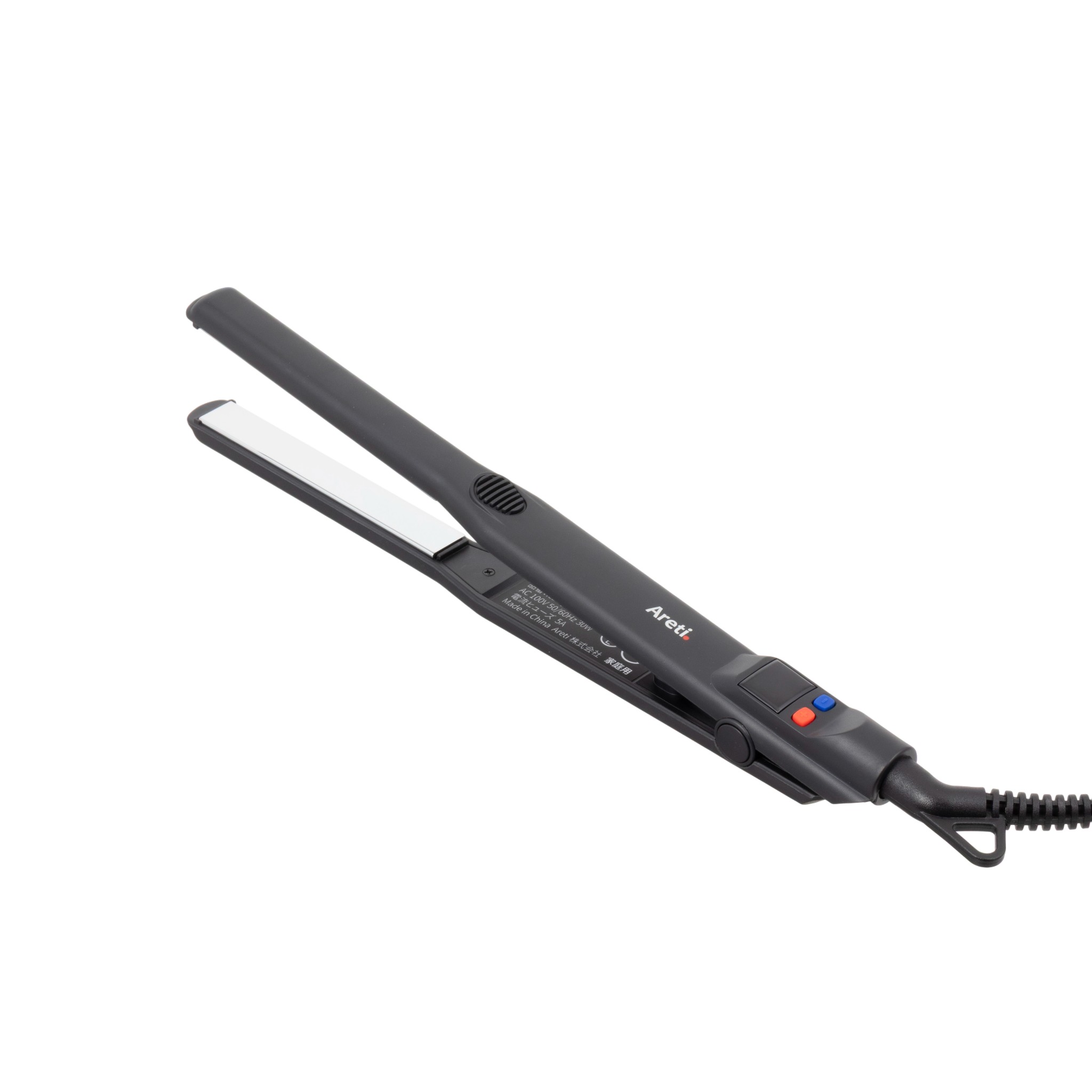 Areti「Precision 2way ストレート カール アイロン」は、15mmのプレート幅で男性のヘアスタイリングでも細かいセットが表現できますよ。設定温度になるまでの時間の検証では、電源を入れてから35秒ほどで温度に到達し、高評価を獲得。15mmのプレート幅は男性のヘアスタイルをアレンジしやすく、仕上がり(カール)の検証では、ソフトな印象の仕上がりになり好評でした。Cカールやニュアンスカールのスタイリングがしやすいでしょう。使い勝手のよさの検証では、モニターから「コンパクトなプレート幅で使いやすい」「プレートがすべりにくい」「髪に引っ掛かりを感じた」などの声が挙がりました。コンパクトなプレートですが、アイロン本体が長めなので、初心者が束感を作るのはハードでしょう。