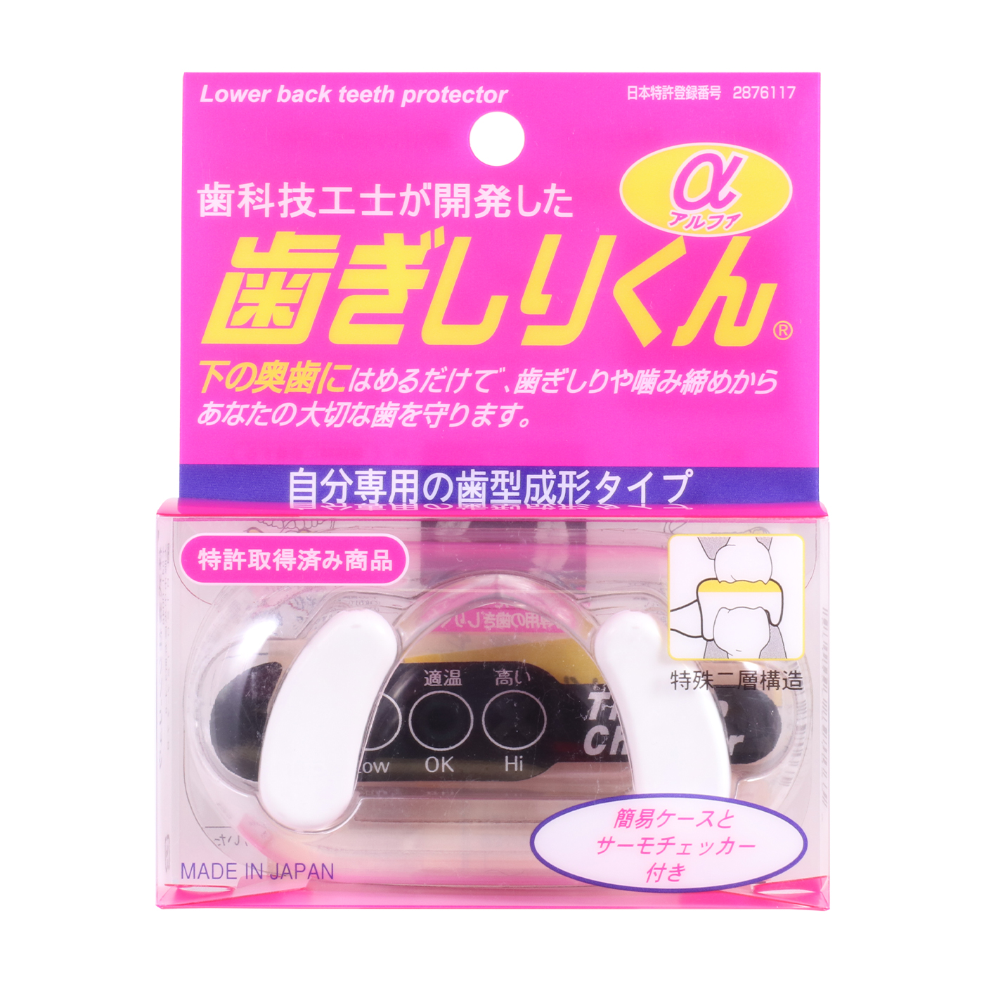 シャトードールの「歯ぎしりくんα」は、歯科技工士が開発に携わっていると謳う奥歯装着タイプの商品。付け心地の検証では、ブリッジが舌のうえにくるため口が閉じづらいことに加え、奥歯しかカバーできないため噛み続けていないとずれてしまい評価は伸び悩みました。フィット感がほとんどないため、就寝中に口から出ている場合も。奥歯部分しかないので、歯並びや噛み合わせが変わるなどの心配はほとんどありませんが、フィット感重視の人は避けたほうがよいでしょう。また、装着は取り外しやすいのが魅力な一方、成形に時間がかかりスムースに装着できず評価が伸び悩みました。さらに成形の際は付属のサーモチェッカーで温度調整はしやすいものの、EVA樹脂がやや固めで歯形がつきづらい印象でした。一方、耐久性は負荷をかけても穴があくこともなかったことに加え、0.5mm程度しか凹まなかったため十分な結果を獲得しました。奥歯にのみナイトガードがあることで余計に噛んでしまうリスクもあるので、食いしばりで悩んでいる人には不向きといえます。