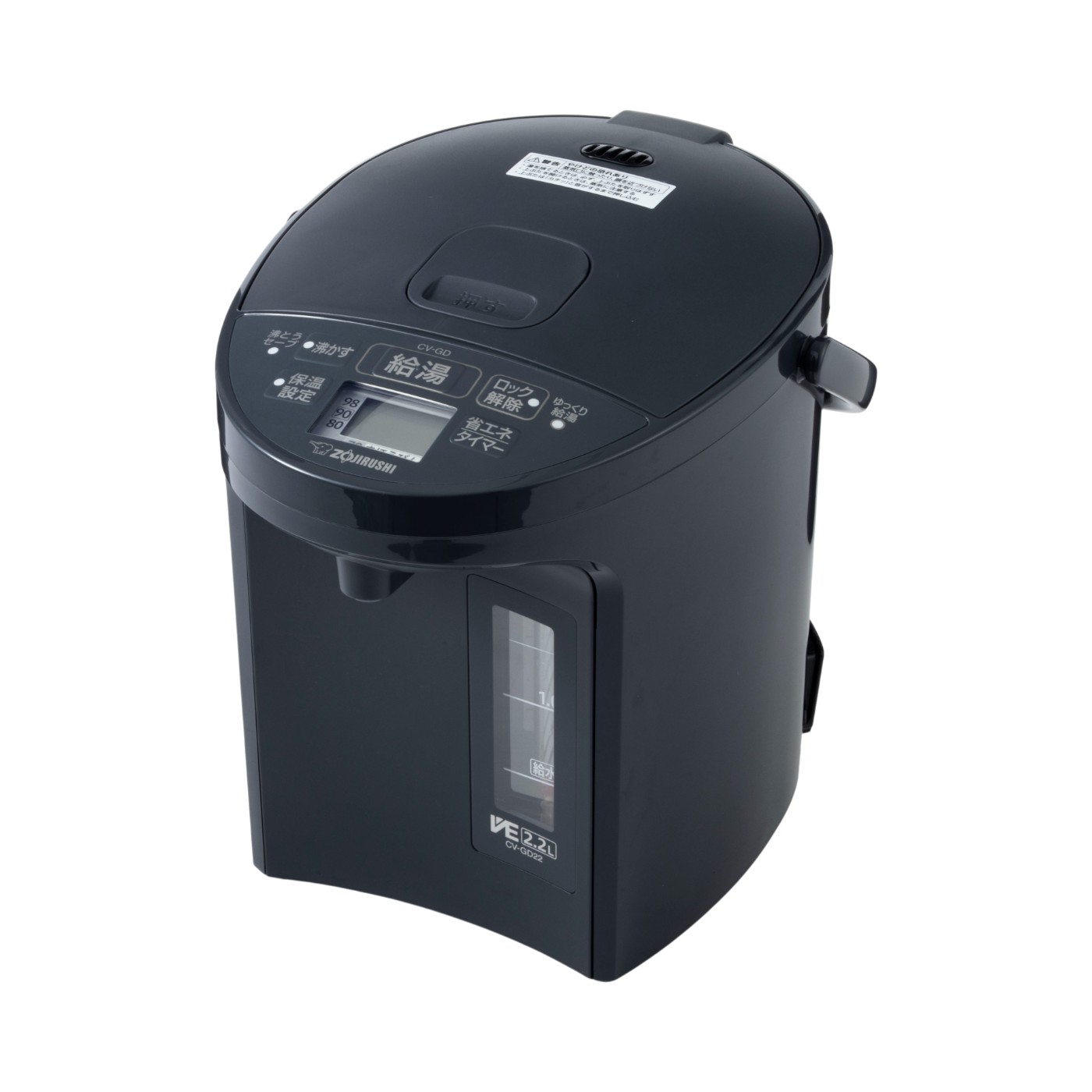 象印マホービンの「マイコン沸とう VE電気まほうびん CV-GD22」は、905Wの高出力で素早く沸かす電気ポット。2.2Lの容量を持ち、まほうびん構造で保温効率を高め、消費電力量を抑える設計です。4段階の保温の温度設定を搭載し、大きな操作パネルと視認性の高いボタン配置が特徴です。沸騰時間は約12分と、朝の忙しい時間帯や急な来客時にはやや不向きですが、家事の時間に余裕があるなら問題ない水準。長時間にわたって70℃を維持できており、何度も沸かし直す手間を省けるのは魅力といえます。また、電動給湯式を採用しており、ボタンひとつで簡単に給湯できる仕様です。安全面では、給湯ロック機能と空焚き防止機能を搭載しており、誤操作や空焚きのリスクを抑えるつくりです。ただし、実際に倒すと湯漏れが発生し、沸騰時には蒸気が出たため、小さな子どもやペットがいる家庭では設置場所に注意が必要でしょう。転倒時の湯漏れや蒸気が出る点はあるものの、長時間保温したい人や家族が多く何度も沸かす必要がある人におすすめの商品です。力を入れずに給湯したい人や、用途に応じて温度を変えたい人にも適しています。
