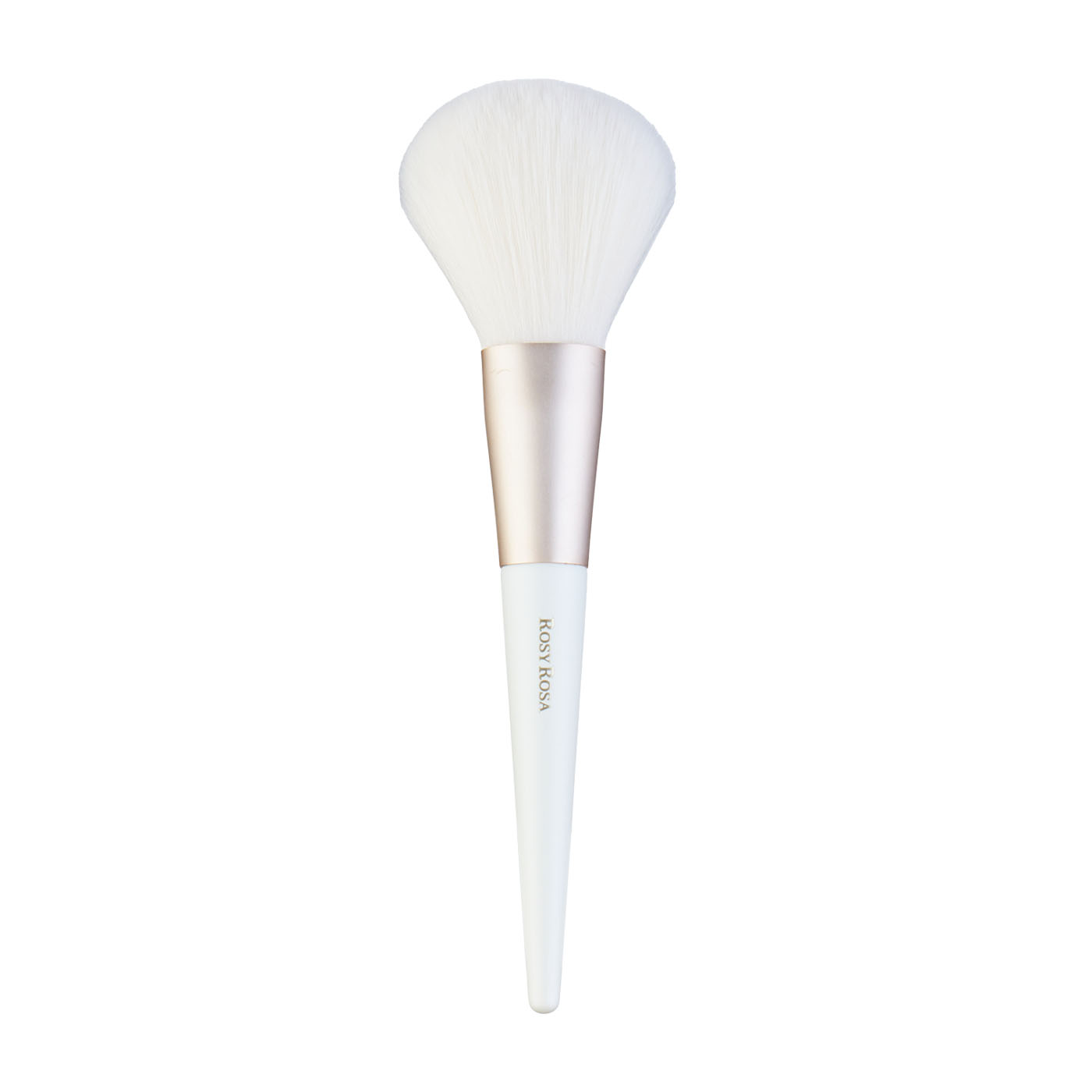 シャンテイのロージーローザ「エンジェリッチブラシ パウダー用」は人工毛を使用したブラシ。柔らかくしなやかで、羽根のような肌触りを追求して開発されたと謳っています。ブラシを手に取ると、ほどよい持ち手の長さにくわえて25gという軽量な点がメリット。扱いやすいブラシがほしい人におすすめといえます。手の動きにあわせて柔軟にしなる毛は肌に当ててもほとんどチクチクしませんでしたが、人によっては「摩擦を感じる」と意見が分かれる結果に。肌あたりが優秀とはいい難いものの、肌が敏感でなければそこまでの懸念は不要でしょう。また毛幅が4.8cmとかなり広めであるためか、額や頬など顔の広い面にはよくフィットしました。ブラシの性能の検証では高評価を獲得しましたが、ブラシの毛量が少ないためかややぼかしにくいので、チークやシェーディングなど色をのせるときよりもフェイスパウダー用として使うほうが向いている商品といえます。