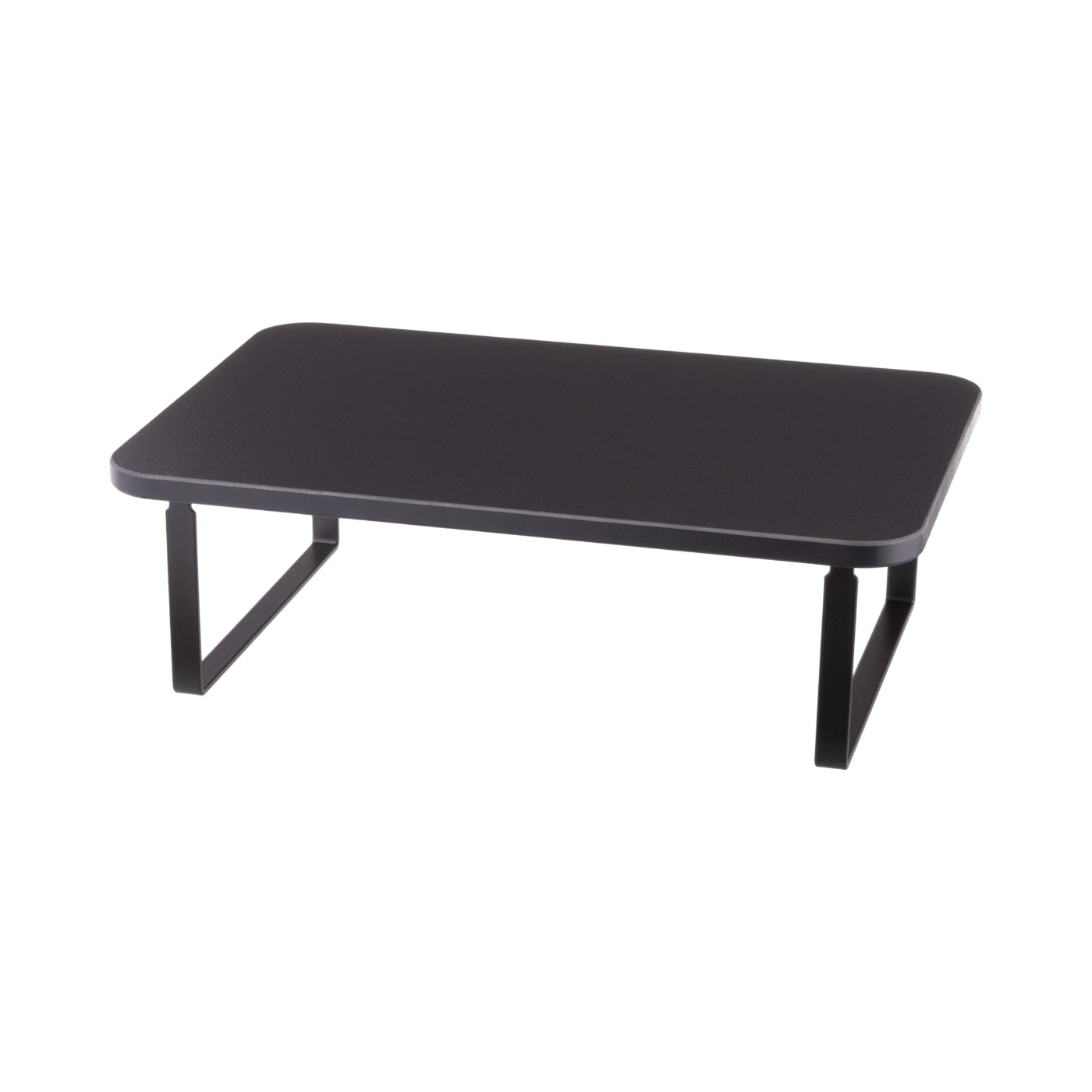 エレコムの「ディスプレイスタンド PCA-DPSW3812BK」は、幅38cmとコンパクトなモニター台。27インチまでのディスプレイに対応し、高さを約12cm上あげることで目線を高く保てます。実勢価格は2,000円台〜3,000円前後と、手頃な価格で導入しやすいモデルです。安定性の検証では、15kgの重さを載せてもたわまず、高い安定性がありました。脚部にはゴム脚が付いているため、モニターを載せてもズレにくい仕様です。作業中の揺れを気にせず快適に使用できるでしょう。収納性は、内寸の高さ10.8cm、幅29.5cmと幅は狭いものの、側面に壁がないので、脚に載せた状態ならフルサイズキーボードも収納が可能です。省スペースで設置できるため、狭い作業環境に適しています。低価格ながらしっかりとした作りで、モニターの位置をあげて姿勢を改善したい人には、コストパフォーマンスに優れた選択肢となるでしょう。
