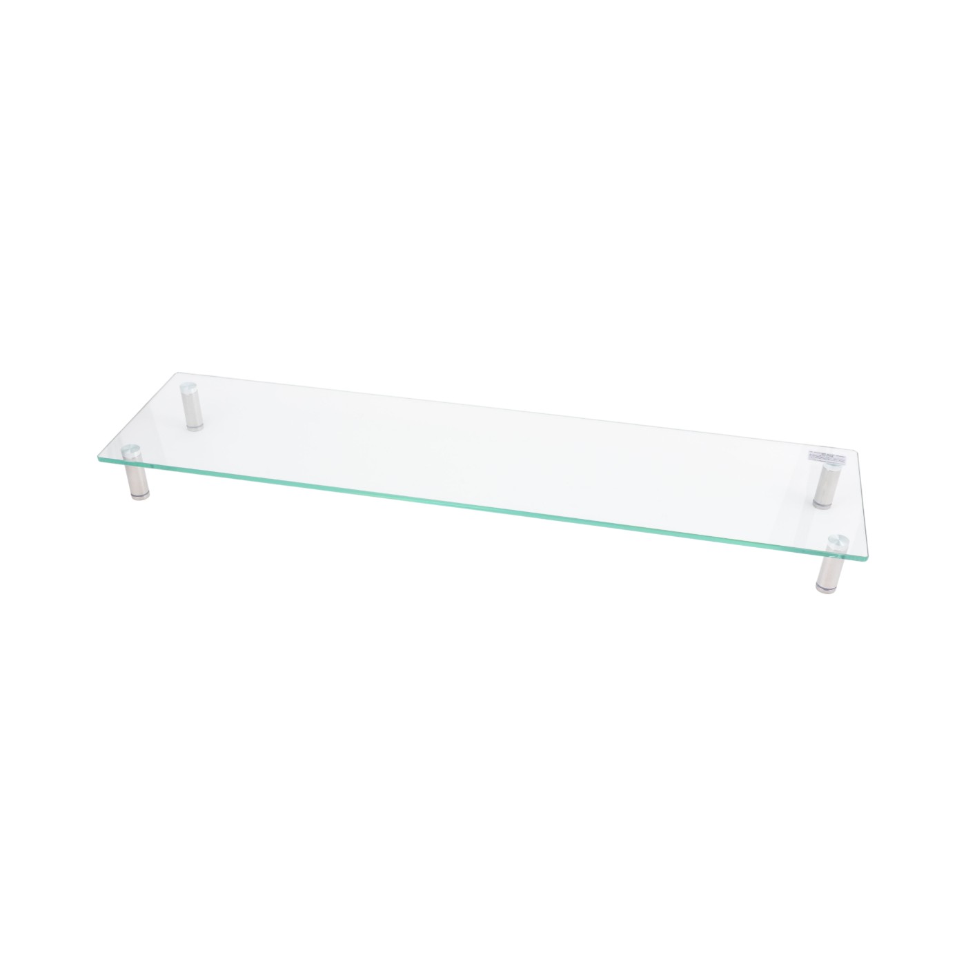 アイリスオーヤマの「モニター台 MNS1000G」は、幅約100cmの強化ガラスを使用したワイドモデル。デュアルモニターの設置にも対応し、デスク周りに透明感と開放感を与えます。検証では15kgの重りを載せてもたわまず、モニターに加えて本などを置いても大丈夫な安定性を確認しました。幅100cmと長いので中央に重さを集めるのは推奨しませんが、一般的なモニターやデュアルモニターでの利用には十分な性能といえるでしょう。収納スペースは、実測の内寸幅が90.5cmもあるため、フルサイズのキーボードとマウスを横に並べてもまだ余裕があります。ノートパソコンやタブレットなど、複数のデバイスを並列で収納したい場合には非常に便利です。100cm幅の広大な収納スペースは大きな魅力。デュアルモニターの設置や、デスク上のデバイスを1か所にまとめたい人には、使い勝手の良い一台です。