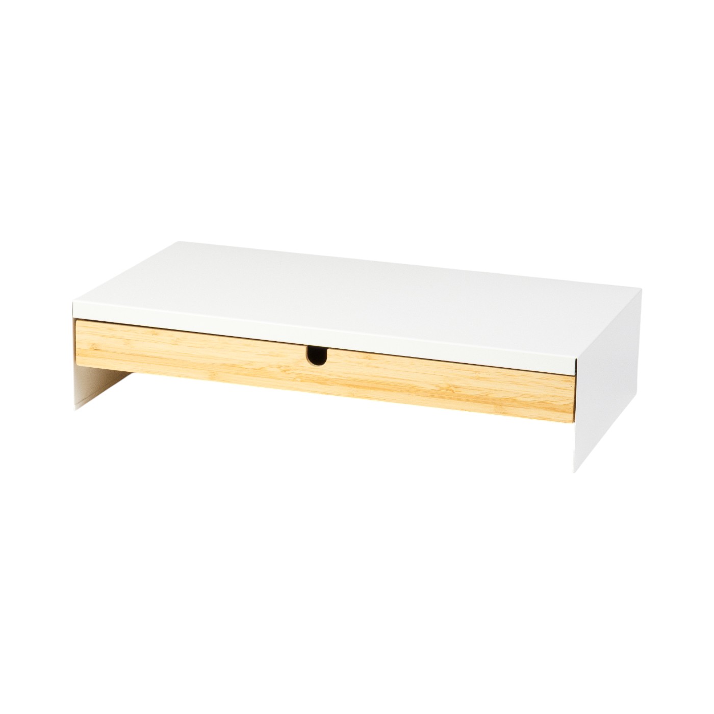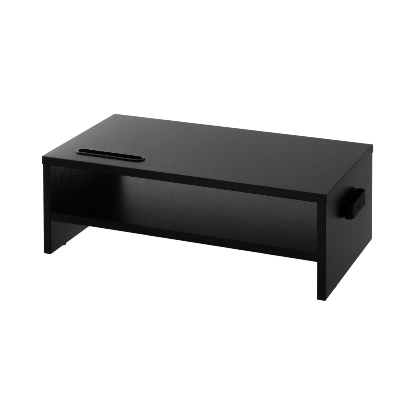 1homefurnitの「モニター台」は、安定性の高いシンプルなモニター台がほしい人におすすめです。安定性の検証では、15kgの重りを載せてもたわまなかったため、サイズの大きいモニターを載せても問題ありません。また、モニター台にはスマホ用のスロットやケーブルをまとめるためのクリップなどが付いているので、デスク周りをスッキリできるでしょう。横幅の内寸は39.5cmと十分な広さの収納が確保されており、ノートパソコンやテンキーレスキーボードを収納できます。引き出しはないため、見た目もスッキリさせたい人には不向きですが、収納したものをパッと見分けられるので、頻繁にモノを取り出す際には便利です。高さは14.2cmとやや高めのため、モニターが高くなりすぎないように使用するデスクの高さと自分の目線の高さなどを確認してからの購入をおすすめします。