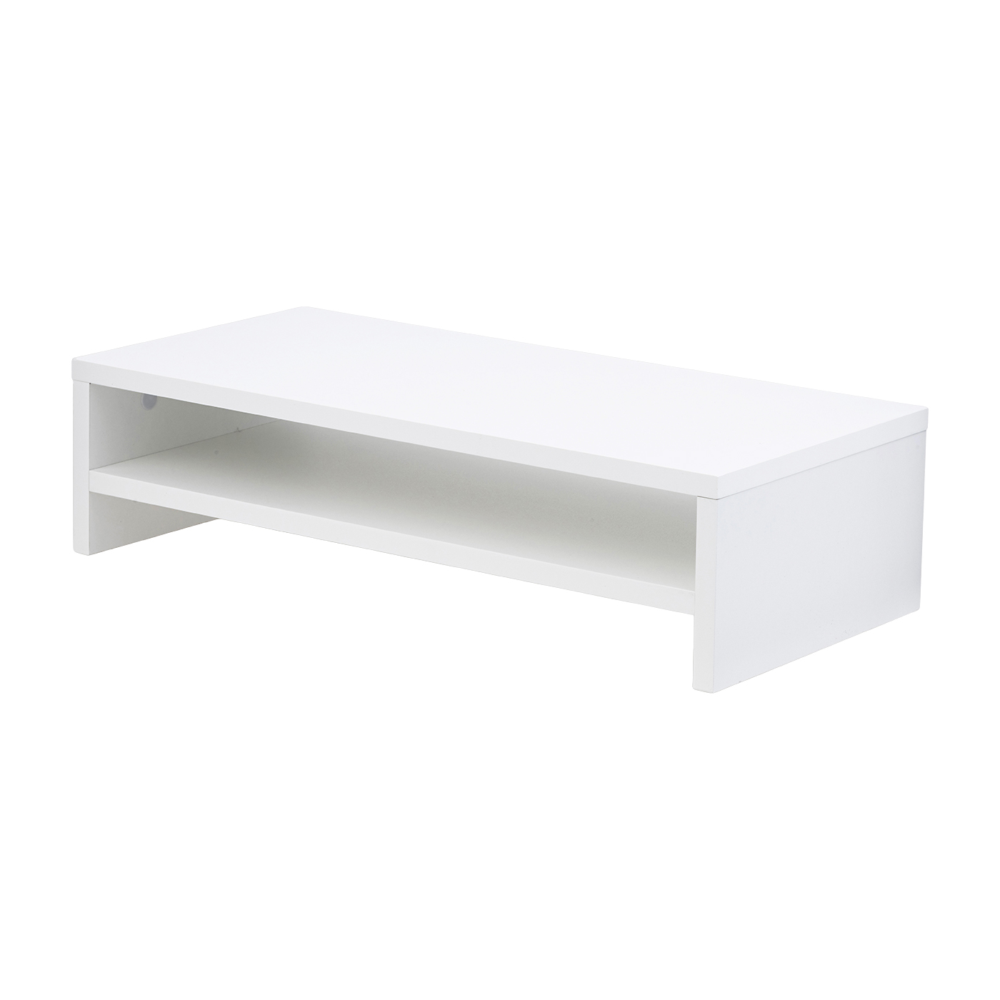 FITUEYESの「モニター台」は、収納力のあるシンプルなモニター台を探している人におすすめです。高さ調節機能などもない、シンプル構造のラックタイプ。白色でインテリアになじみやすいため自宅のデスクやオフィスにも馴染みやすいでしょう。たっぷり収納できる2段式である点に加え、横幅の内寸は52.2cm・奥行は24.4cmと広めの収納スペースを確保できるのが魅力。テンキー付きのフルキーボードとマウスのほか、A4用紙やノートパソコンも収まります。高さは14cmで、1段目と2段目に分けて収納可能です。引き出しはなく、収納したものをパッと見渡せるものがほしい人向き。1つあればデスクの上がすっきりと片づくので、小さめのデスクを勉強や仕事用として兼用したい人にもよいでしょう。5kgのおもりを載せてもたわむことはなく、ガタつきもありませんでした。24インチ以下のモニターのほか、軽量タイプのプリンターなどを置くラックとしても活躍しそうです。USBポートやワイヤレス充電などの機能はついていません。機能性よりもシンプルな使い心地を求める人はぜひ候補に入れてくださいね。