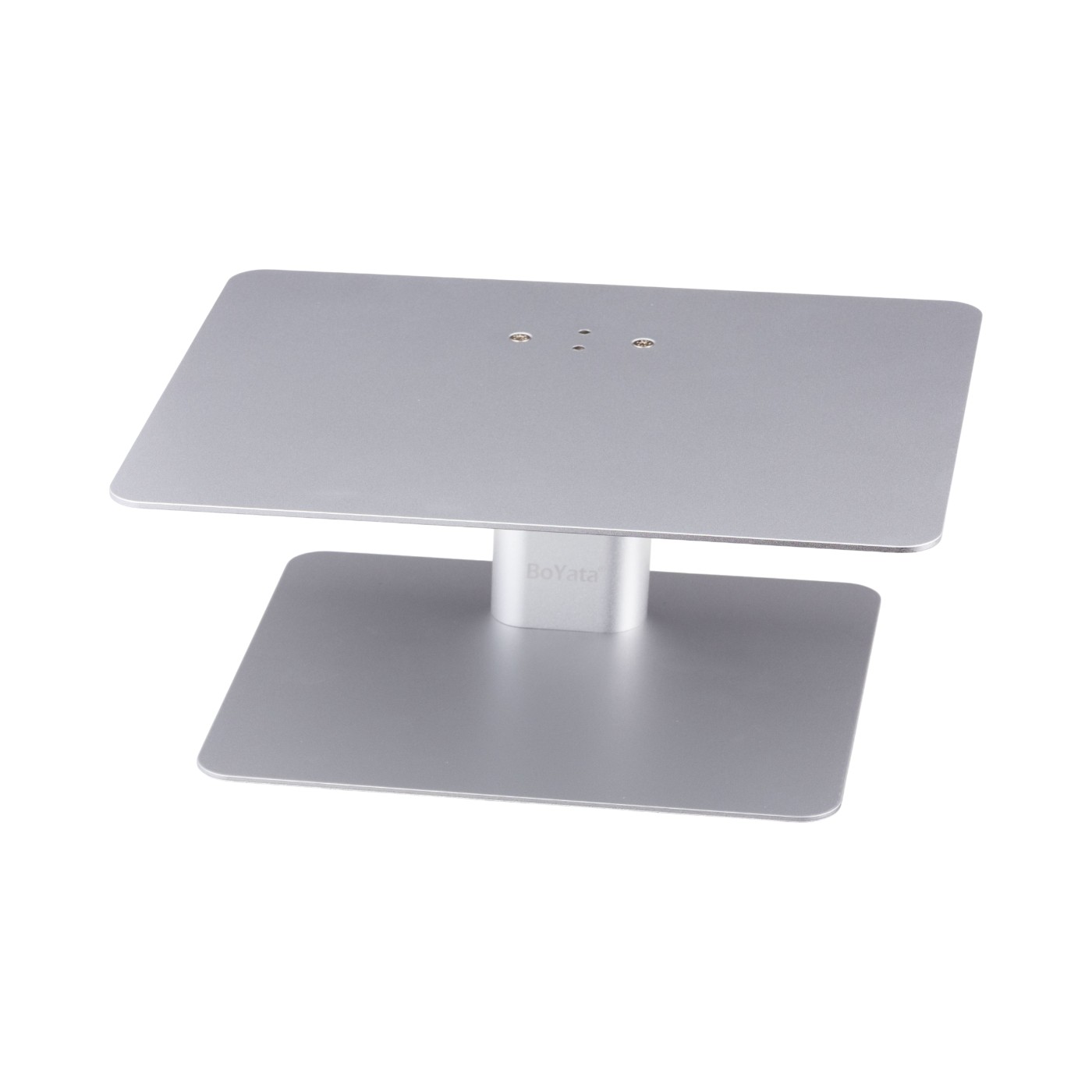 BoYataの「モニタースタンド」は、メタル製の高級感あるデザインが特徴のモニター台。高さ調節の自由度も高く、自分好みの位置に調整可能。また、5分程度で簡単に組み立てられる手軽さも魅力です。金属製の見た目とは裏腹に耐荷重よりも軽い9kgの重さでたわみました。一般的な24インチ~27インチなら十分に使用できますが、側面の支えがない分、モニターを置く位置によっては不安定になりやすい点に注意しましょう。下部の収納スペースは高さが17.7cmと十分に確保されており、横幅の制限はなくフルサイズキーボードやノートパソコンなどをゆったりと収納できます。デザイン性の高いモニター台を探している人や、高さを調整して、適切な目線を確保したい人におすすめ。下部にキーボードなどを置きたい人にも使い勝手の良い一台です。