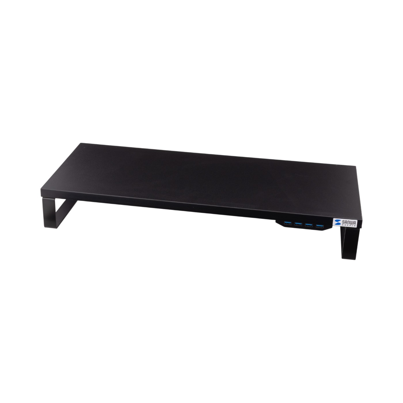 サンワサプライの「USBハブ付きモニター台 MR-LC215BK」は、USB Type-Aを4ポート備えたモニター台。幅60cm、奥行き24cm、高さ8.6cmのサイズで、耐荷重は10kgです。USBポートはUSB 5Gbpsに準拠し、出力は実測値で5.62Wでした。安定性の検証では、耐荷重より重い15kgの重さを載せてもたわまず、高い安定性がありました。また、底面には滑り止めがあるため、多少の衝撃があってもズレにくいでしょう。また、収納性の高さの検証では、内寸の高さ・幅ともに十分なサイズが確保されており、フルサイズのキーボードを入れられるスペースがありました。デスク周りをすっきりさせたい人や、キーボードを収納して作業スペースを広く使いたい人におすすめです。安定感と収納性を兼ね備えた商品を探している人にぴったり。また、USBポートも搭載しているのでスマホなどのデバイスの充電をしたい人にもおすすめです。