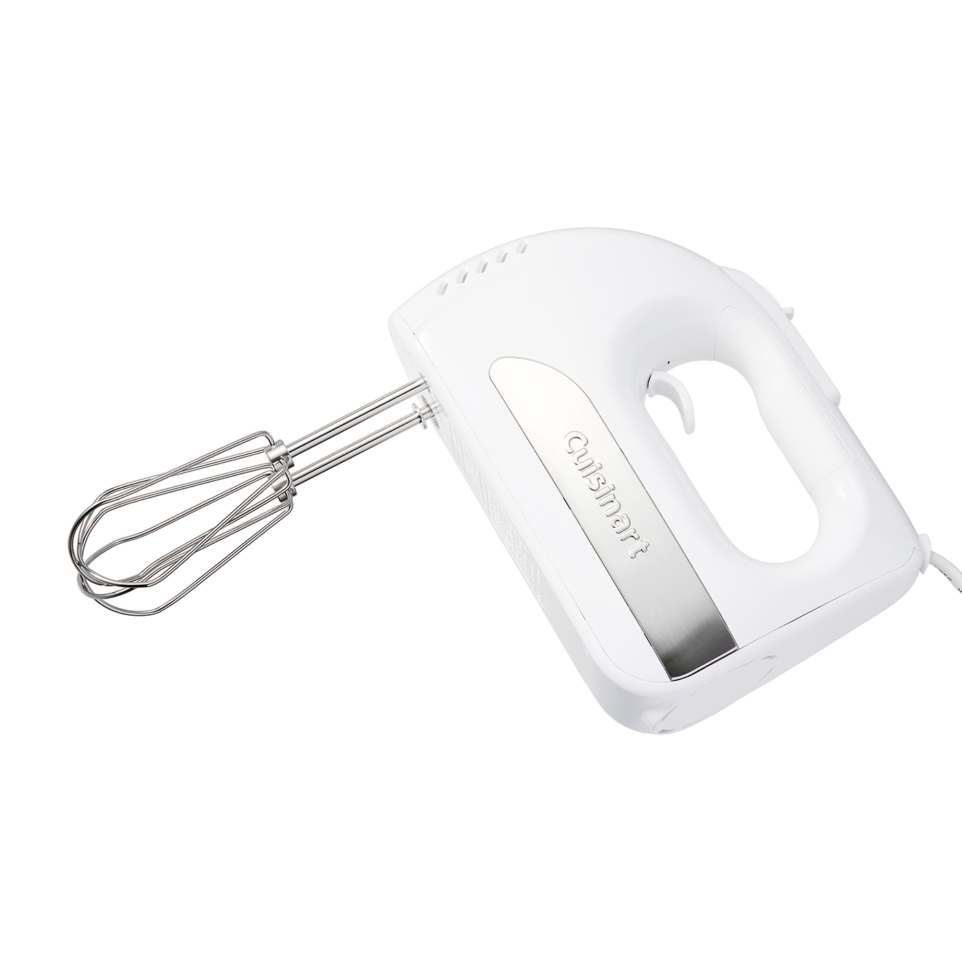 コンエアージャパンの「クイジナート スマートパワーハンドミキサー プラス HM-060SJ」は、お菓子作りだけでなくパンなど幅広い作業に使いたい人向けの商品。アタッチメントが3種類ついており、混ぜる・こねる・泡立てるの3つの作業ができます。生クリームが8分立てになるまでにかかった時間は1分29秒とスピーディ。メレンゲも気泡がすべて均一とまではならないものの満足のいく仕上がりでした。しかし、混ぜやすさは不満の残る結果に。本体が1.08kgと重く安定感がある点は好印象ですが、使用後は手首や腕に疲労感が残ります。実際に使ったモニターからも「軸がブレる感覚はないが、本体が重すぎて手や腕に疲労感が残った」という声が挙がりました。後片づけは簡単。ビーターは持ち手の近くにあるレバーを引くと外せ、食洗機で洗えます。収納ケースもついているので、たくさんある付属品をなくす心配が少ないでしょう。