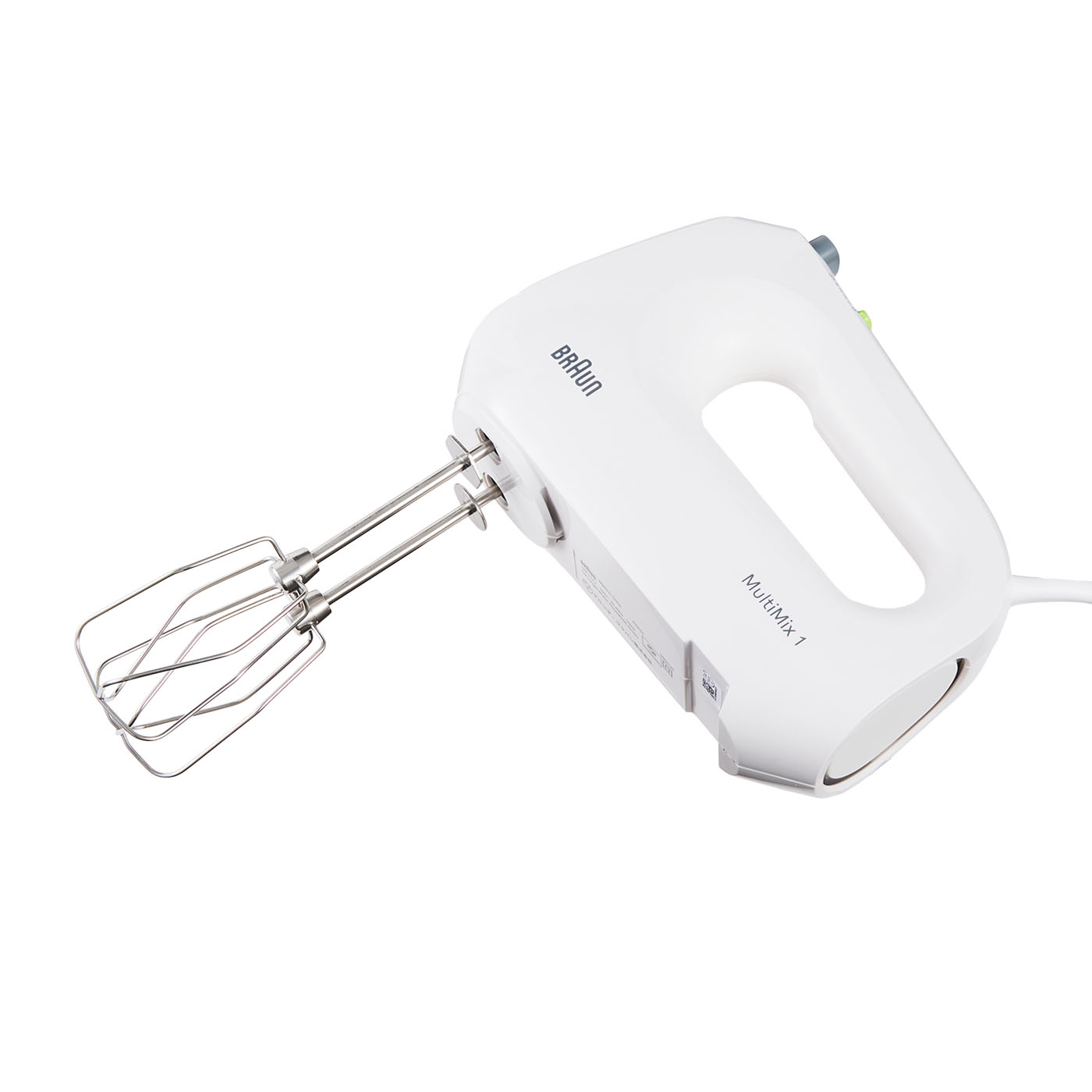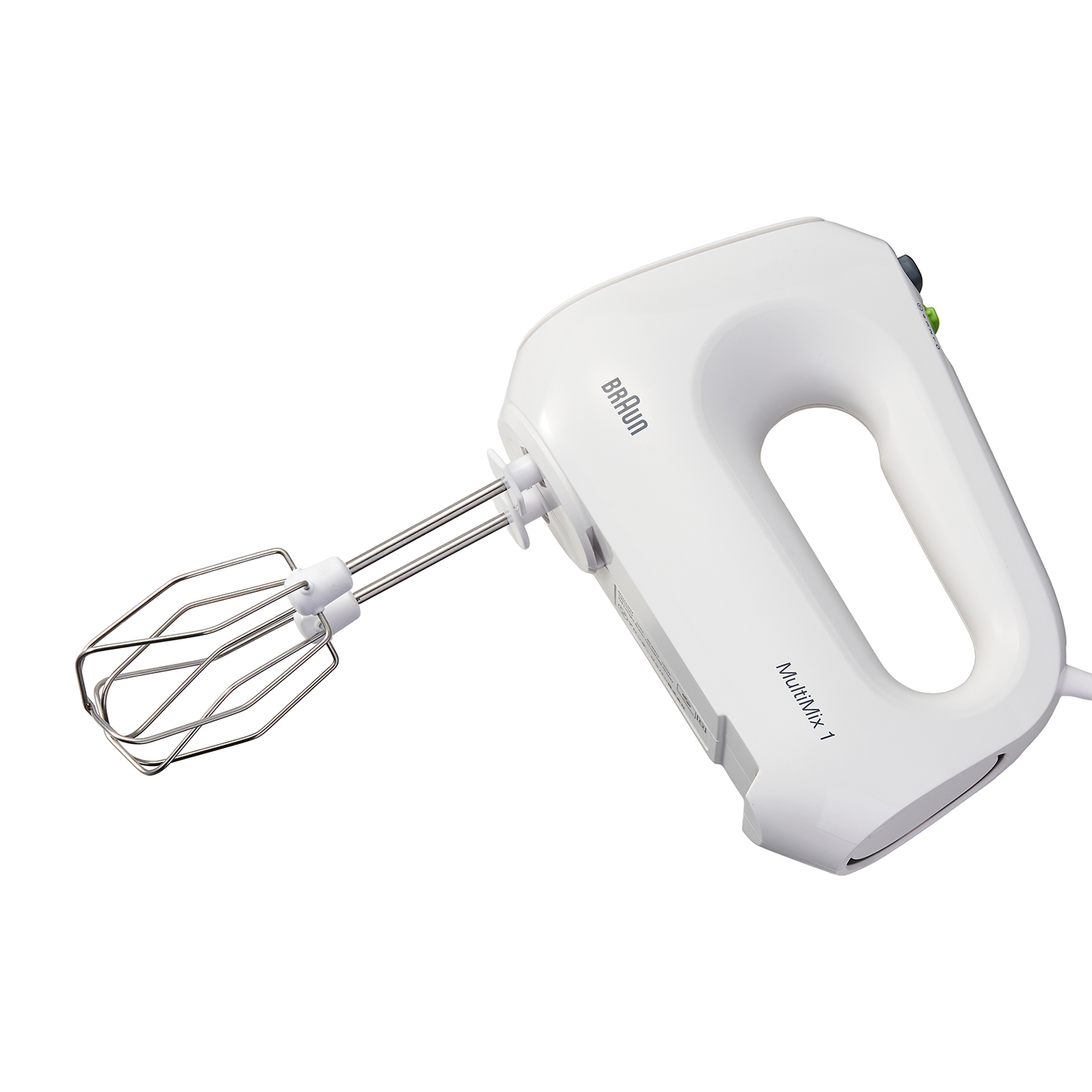 Braunの「マルチミックス1 ハンドミキサー HM1011」は、お菓子作りが好きな人に自信を持っておすすめできる商品。メレンゲ完成までの時間が早いため、作業効率がグッと上がります。実際に検証した結果、ホイップクリームが8分立てになるまでにかかった時間は1分20秒でした。スピーディかつ泡も飛び散りにくいうえに、音も比較的静か。稼動音は54.1dBと掃除機より静かな数値です。きめ細かいメレンゲは、プロのパティシエも唸るほどきれいな仕上がりでした。唯一の弱点は、その重さ。本体は0.82kgとやや重たく、実際に試したモニターからも「最初の1分くらいで重いと感じ始めた」「持ち上げたときから本体の重さを感じた」という声が挙がっています。とはいえ握りやすい形状のハンドルが重さをカバーしており、多くのモニターがブレを感じず使えました。ビーターに加えてニーダーも付属しており、混ぜるだけでなくこねることも可能。食洗機にも対応しており、後片づけも簡単でしょう。コードを本体に巻きつけて専用ポーチに収めればコンパクトに収納できます。混ぜやすさ以外でほぼ弱点のない優秀なハンドミキサー。何を買えばいいか迷っている人は、まず候補にしてくださいね。