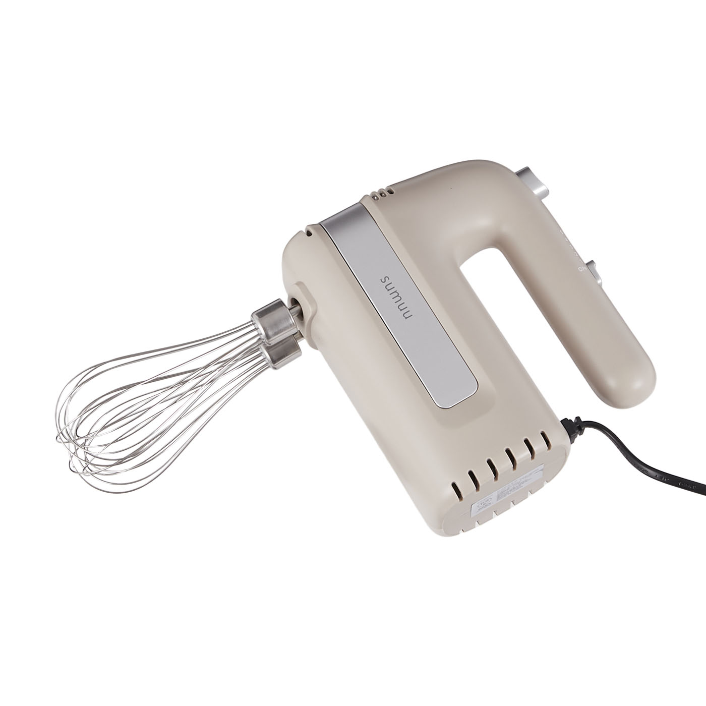 マクロスの「sumuu ハンドミキサー アンド・ニイー MEK-90」は、泡立て以外にも使いたい人に向いています。ニーダーが付属しており、パン生地やバターなどの硬いものも混ぜられるのが特徴。本体が自立するので、置き場所にも困りにくいでしょう。生クリームが8分立てになるまでにかかった時間は1分7秒とかなりスピーディでした。パワーがあるため跳ねが気になりますが、泡立てに時間がかからず便利です。一方泡立てに特化しているぶん、卵白を泡立てるとメレンゲのきめが粗く仕上がりました。持ち手の太さがほどよく、軸のブレを感じずに使用できたことがポイントです。重さも感じにくく、モニターからは「3分間使用しても手がまったく疲れなかった」という声が多数。ビーターを取り外す専用のボタンがあるのも便利ですが、収納ケースがないため後片づけがしにくい点には注意しましょう。食洗機にも非対応で片づけの手間があるものの、パン作りにも使いたい人や素早く泡立てたい人は検討してみてください。