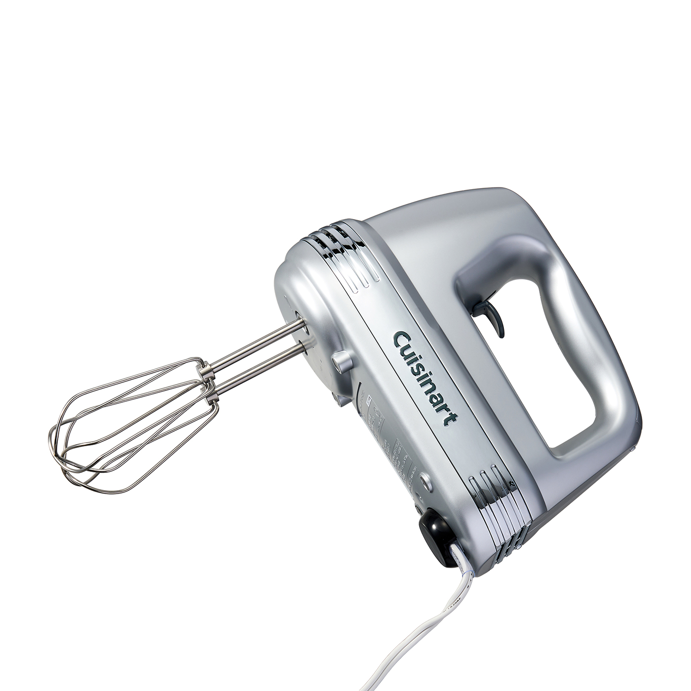 コンエアージャパンの「クイジナート サイレントパワーハンドミキサー HM-PRO6J」は、きめ細かいメレンゲをスピーディに作りたい人向けの商品です。速度調節は6段階と細かく調節できるため、自分好みの泡立ちにできます。ビーターが一般的なものよりも長いので空気を取り込みやすく、ホイップクリームが8分立てになるまで1分35秒しかかかりませんでした。メレンゲを泡立てた際も全体的にきめが均一で満足度の高い結果に。しかし、本体が1.01kgと重いので手首だけではコントロールが難しく、使用途中で腕が疲れる印象。実際に使ったモニターからも「8分立てになるまでギリギリ持っていられるかといった感じだった」という声が挙がりました。本体が自立するタイプなので、疲れたときに一旦置くということはできそうです。後片づけは、ビーターをワンタッチで外せるので手を汚すことなく洗える点は好印象。しかし、収納ケースがないので付属品がすべてまとまらず、コンパクトにならない点はネックになるでしょう。
