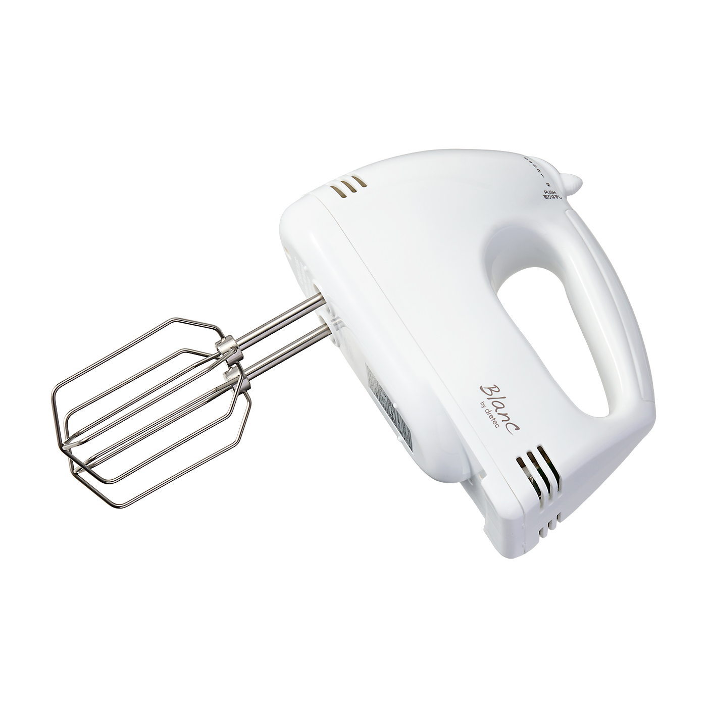 ドリテックの「dretec ハンドミキサー HM-710」は、素早く泡立てられるうえ、適度な重さで混ぜやすい商品です。ビーターが大きく、より空気を取り込みやすいため、速く泡立つようになっています。ホイップクリームが8分立てになるまでにかかった時間は、1分31秒とスピーディ。仕上がりもよく、泡立てたメレンゲは気泡がほとんど均一になりました。混ぜやすさも高評価を獲得。本体の重量が0.63kgと適度な重さで、実際に使ったモニターから「手に伝わる振動が少ないうえ、軸がまったくブレない」という声が挙がっています。自立式なので、作業途中で手が離せる点もメリットです。しかし、収納のしやすさと稼動音の大きさは今一歩という結果に。ビーターがワンタッチで取り外せるうえ洗いやすい点は好印象ですが、収納ケースがないため散らばらないように外箱に入れる必要があります。稼動音も61.4dBと大きいので、使用する時間には注意してくださいね。