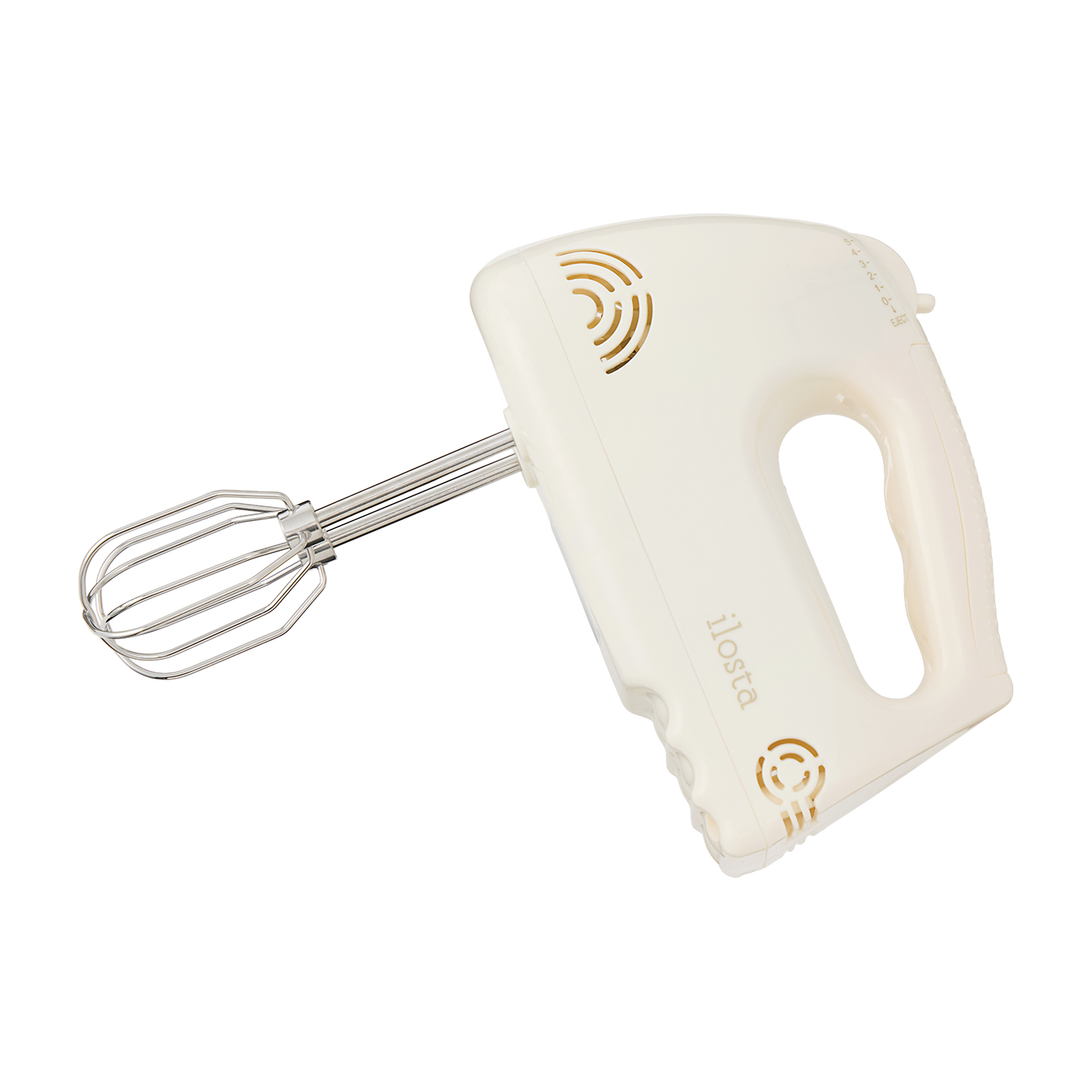 ilostaの「ハンドミキサー il-hm001」は、軽量で手軽に使いたい人に向いた商品です。本体重量が0.58kgと軽量ながらも軸がブレることがなく、コントロールしやすい印象でした。実際に混ぜやすさの検証で使用したモニターからも「8分立てまで泡立てても疲れが残っていなかった」「軽い分軸がブレることを心配したが、最後まで安定感があった」という声が挙がっています。本体が自立する点も好ましく、手を離したいと思ったときも作業台を汚すことなく置けるでしょう。後片づけのしやすさも良好。ビーターは食洗機で洗えないものの簡単に取り外せ、収納ケースにまとめて収納できますよ。泡立ちの速さは、1分29秒とスピーディ。しかし、メレンゲの仕上がりは全体的に気泡が荒く、仕上がりの良いものとはいえませんでした。