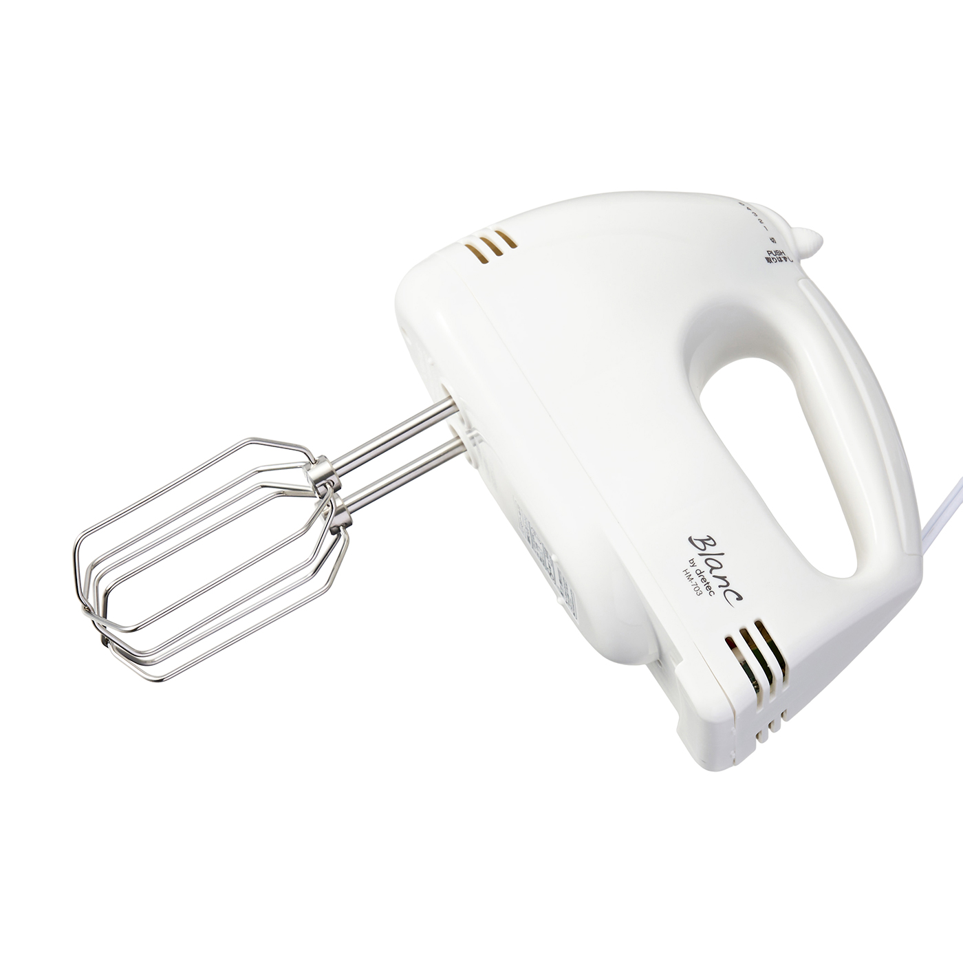 ドリテックの「dretec ハンドミキサー HM-703」は、使いやすさと仕上がりの良さを両立したい人におすすめの商品。本体が自立するので手を離したい時にすぐ置け、ほかの作業に移れるので使い勝手に優れているでしょう。ホイップクリームが8分立てになるまでにかかった時間は、1分32秒とスピーディで効率的に作業できます。また、空気を取り込みやすいはりがねタイプなので、メレンゲの仕上がりは空気がしっかりと含まれたきめの細かいものになりました。本体の重量も0.62kgと軽すぎず重すぎないため、混ぜやすいと好評。実際に使ったモニターからも「コンパクトで軽いため力が必要なく簡単に混ぜられた」「軽いからといって軸がブレることも少なく操作がしやすかった」という声が挙がっています。後片づけは食洗機対応ではないものの、ビーターを取り外すボタンと収納ケースがあり好印象でした。しかし、稼動音が77.0dBと大きいので、使用する時間帯には注意してくださいね。
