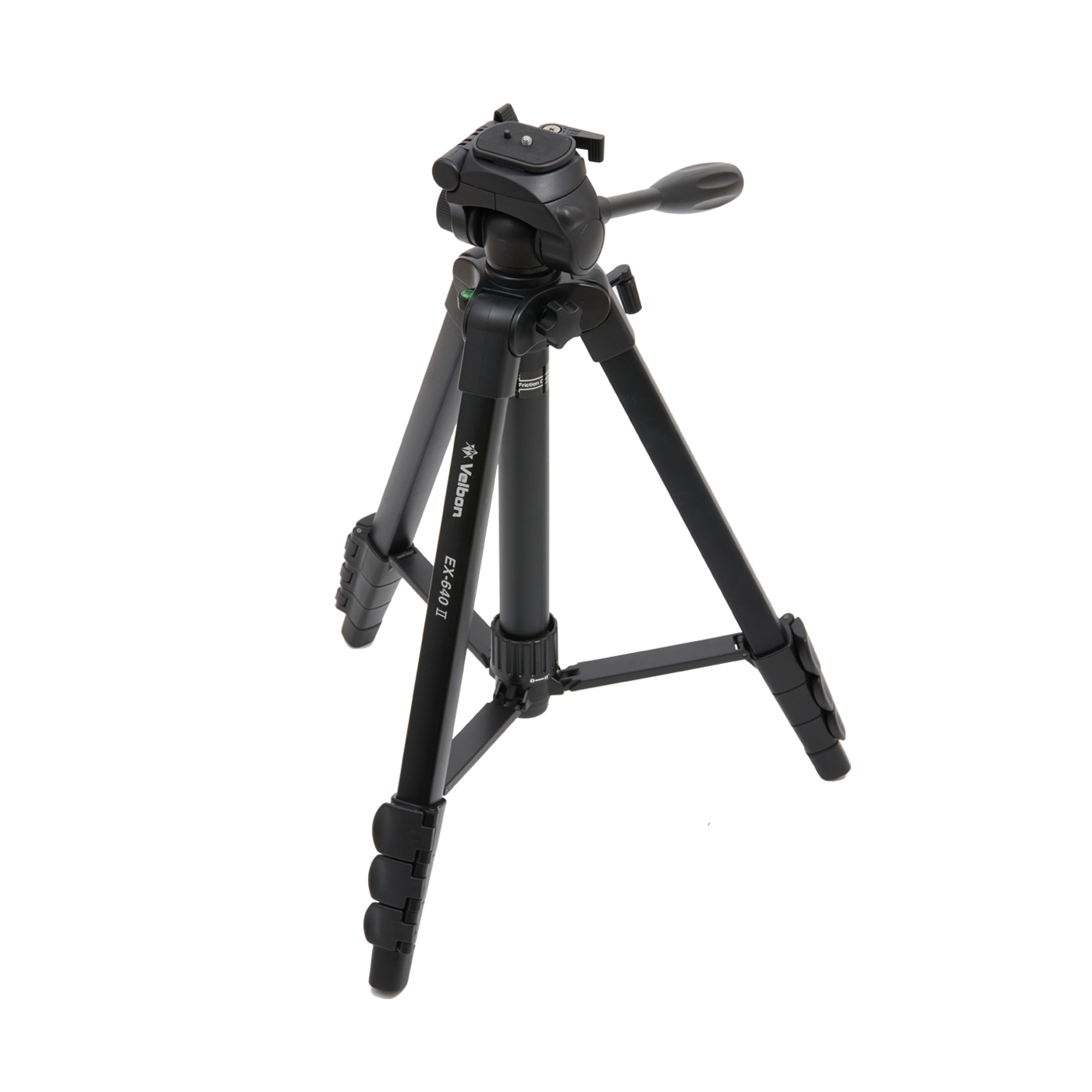 三脚専業の国内ブランドとして人気の高い、ベルボンの「ファミリー三脚 4段 EX-640 II」。三脚の入門モデルとして人気が高く、家庭用ビデオカメラや軽量なミラーレス一眼などを載せる目的で選ばれている商品です。脚に衝撃を与えた際にはブレは目立たないものの、カメラに衝撃を与えた際にはブレが気になりました。軽い機材を使ったり、センターポールを伸ばさないで使ったりする際には、ブレは目立ちにくいでしょう。脚パイプはスムーズに伸縮し、脚のロックの操作も簡単です。雲台は引っかかることなく操作できました。固定時にややズレが目立つことがありましたが、厳密な構図の調整をしないなら不満はあまりないといえます。縮長は一般的なアルミ三脚のサイズ感です。小さく軽いわけではないものの、はじめて三脚を買う人でも負担をあまり感じずに持ち運べるサイズといえます。