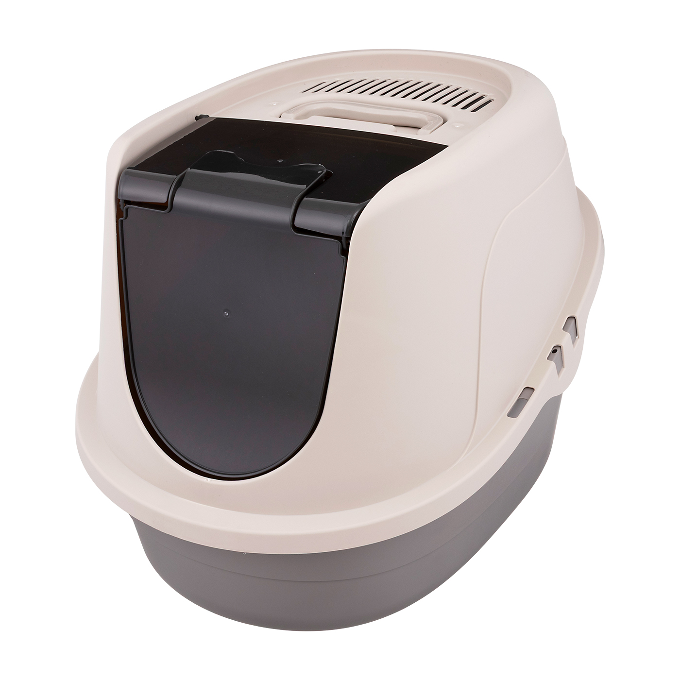 「散らかりにくいネコトイレ」は、KEXUAN TRADE製のエントリーモデルです。ドーム型のフルカバー構造で、猫砂の飛散を抑えます。また、軽量で洗いやすく、パーツが少ないため掃除がしやすい点が特徴です。