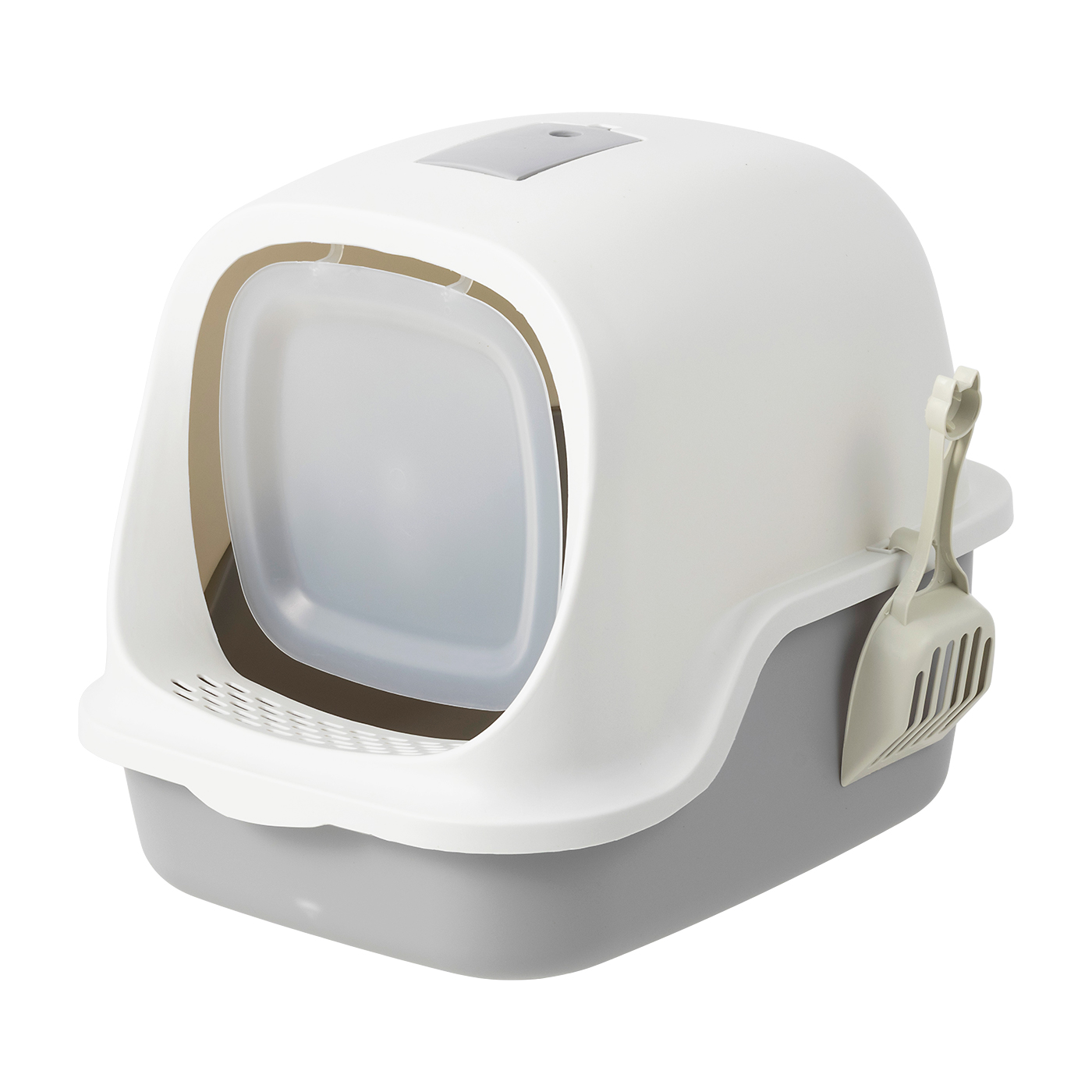 「コーナンオリジナル キャットトイレ」は、コーナン商事が提供する猫用ノーマルトイレです。ハーフカバータイプですが、入口が広く、やや出入り時に砂が外へ飛びやすいといえるでしょう。シンプルで手入れしやすい設計です。軽量で洗うパーツが少ないため、日常の手入れが簡単なのが魅力。カバーの取り外しも可能で、スコップも付属しています。