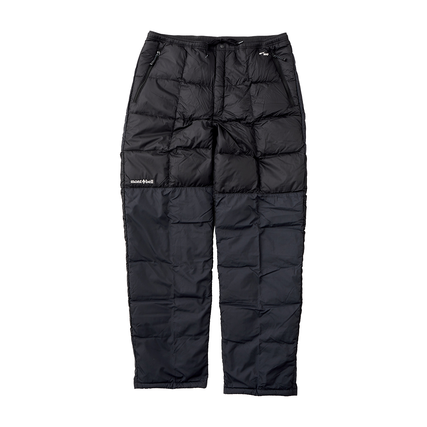 登山者から高い支持を得ている日本の総合アウトドアブランド、モンベル。「スペリオダウンパンツ Men's」は、同社のダウンパンツのなかで最も薄手の商品です。特筆するべきは持ち運びやすさ。400gを超える商品が多いなか、257gと非常に軽量かつコンパクトに収納できます。ザックに収納できる装備量に限りがある登山でも、気軽に持ち出せる防寒着のひとつでしょう。高品質なダウンを使用し、軽量ながらに暖かさを引き上げていますが、中綿の量が多い商品と比較して保温力が高いとはいえません。軽い着用感は魅力ですが、一枚だけで冬山の寒さを乗り切るには満足とはいえないでしょう。軽量性を優先した薄い生地を使っているため、穴が空きやすく傷つきやすい点は要注意。木の枝やギアの引っかけには注意して着用しましょう。火の粉にも弱いため、焚火の近くでの使用にも向きません。撥水性は高く、小雨程度なら十分に弾ける性能でした。湿気に弱いダウンを水分から守れるため、登山などの天候が急変しやすいシーンで使いやすいといえます。テントやシュラフの内部の結露でも、パンツが湿りにくい点もメリットです。真冬の登山の防寒着としては保温力が満足とはいえませんが、春秋の登山の山小屋・テントでの防寒着にはぴったり。夜間の冷え込みが気になるひとや、寝袋の暖かさに不安がある人におすすめです。なお、この商品は軽量性に特化しているため、生地が薄く中綿が抜けやすい性質があります。中綿が生地から飛び出したときは、外へ引っ張り出すのではなく生地の上から内側へ引っ張って戻してください。