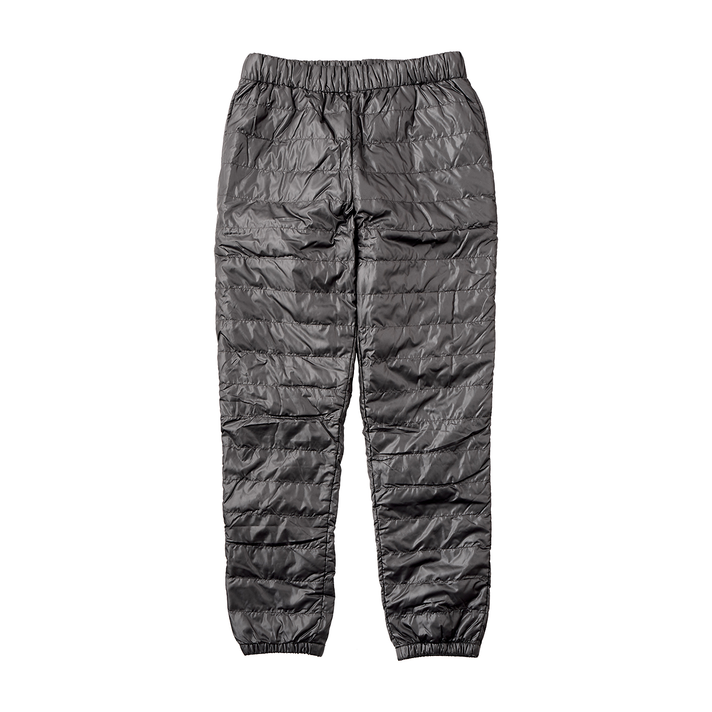 THE NORTH FACE(ザ ノースフェイス)は、高性能かつファッショナブルなアパレルで人気を博しているゴールドウインのブランド。アコンカグアと銘打ったダウン製品は、THE NORTH FACEの定番シリーズです。この「アコンカグアパンツ」はリサイクルダウンを使用したパンツで、軽さと暖かさの両立を目指した商品です。中綿にはレーヨンが20%含まれており、そのぶんFPを実測するとFP 555とほかの商品と比べて控えめな数値。それでも中綿の封入量が約114gと多いことで高い保温力を実現しています。中綿の質も高く、真っ白できれいな見た目が印象的でした。また、中綿は遠赤外線効果で保温力を確保する特殊な素材で、FPの体感よりも軽く暖かい印象のパンツといえるでしょう。難燃素材ではないため焚火には弱く、膝やお尻に補強もありません。引き裂きに強いリップストップナイロンを使用しているため見た目以上に頑丈ですが、木の枝やギアの突き刺し・引っかけには要注意です。撥水性は非常に高く、検証では水滴がきれいな水玉となって落ちました。防水フィルムは入っていないため雨天時の使用には向きませんが、本格的に雨のなかで使用しないなら必要十分。登山・キャンプなどのアウトドアシーンで十分な濡れにくさといえるでしょう。腰~足首にかけてファスナーがある点もこの商品の魅力で、靴を履いたままでも脱ぎ履きできます。登山やキャンプで一息つくときなどに、手軽に着用できることがメリットです。軽さと暖かさのバランスはとれている商品ですが、収納時にかさばる点が惜しいポイント。携帯性を重視する人には向かないでしょう。生地が強くないためキャンプでのハードユースには向きませんが、暖かく撥水性が高いことが魅力。グランピングなどの軽いアウトドアや寒冷地での街着におすすめです。また、登山用に暖かいパンツがほしい人にも向いている商品でしょう。