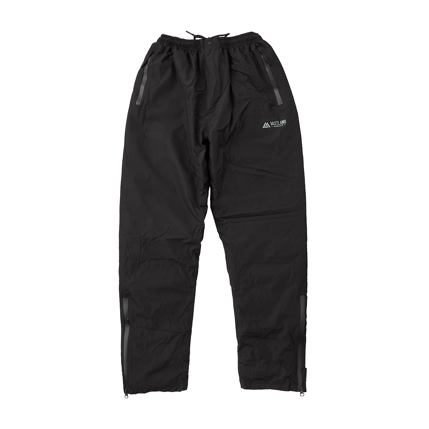 VASTLANDの「アウトドアダウンパンツ 650フィルパワー」。防水透湿素材を表地に使用したダウンパンツです。低価格ながらに、有名ブランドのダウンに匹敵するFP 621を記録。中綿の封入量も約119gと多く、きれいに洗浄されふわふわしたダウンがたくさん詰まっていたことが印象的でした。実際に履いた感触も良好で、分厚い保温層が冷気をブロック。冷たい冬の風に吹かれても冷気を感じないほど暖かいパンツです。強力な撥水加工が施されているうえ、防水性がある表地なので濡れにくい点も大きな魅力。一般的なダウンパンツは撥水性のみですが、この商品は防水性を有している点でアウターとして使いやすいといえます。生地の強度も高いため、木の枝や金属製のギアに擦れたときも穴が空きにくく、キャンプで気軽に使える点もメリットです。サイドファスナーがついているので、靴を履いたまま脱ぎ履きできる点も魅力。両側にファスナーつきのポケットもあり、機能面でも充実していると感じました。そのぶん重量がありかさばるため、持ち運びにはあまり向かず、登山に持っていくのに適しているとはいえません。難燃素材ではないため焚火の近くで使用するときは注意が必要ですが、防水性がある点は他のダウンパンツにはない魅力。アウトドア全般におすすめの商品です。本格的な登山にはおすすめしませんが、防水性が高いため雪中キャンプやスノーシューハイクなど、ライトな雪遊びでも活躍するでしょう。
