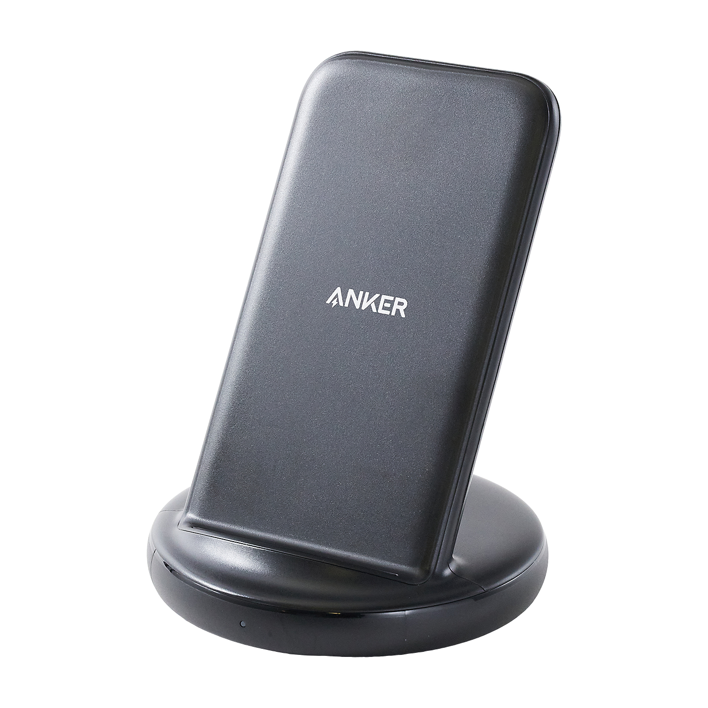 充電器やイヤホンなどのガジェットを販売するメーカー、Ankerの「Anker PowerWave 10 Stand」。カラーはブラック・ホワイトの2色展開で、USB Type-A to microUSBケーブルが付属しています。スタンドタイプの充電器で、上下方向の位置合わせは気にせずスマホを充電可能。左右の位置合わせはスマホの縦置き・横置きに関わらず10mmのズレまで充電ができました。充電範囲は広く、充電位置を細かく気にせず置いても充電ができるでしょう。iFaceや手帳型などの厚さが約4mmある厚めのケースでも充電が確認できました。ほとんどのケースを装着したままでも充電が可能でしょう。最大出力は公称値で10W。Xperia 1 Vを30分間充電したところ10%しか充電が溜まりませんでした。充電は低速で、スマホをしっかり充電するには長時間置いておく必要があります。LEDは正面に配置されており充電状況をいつでも確認可能。一方で、スタンド部分に滑り止めはついておらず、スマホを立てかけながら操作するのは難しいでしょう。本体への入力ポートはmicroUSBでType-Cほど汎用性が高くありません。