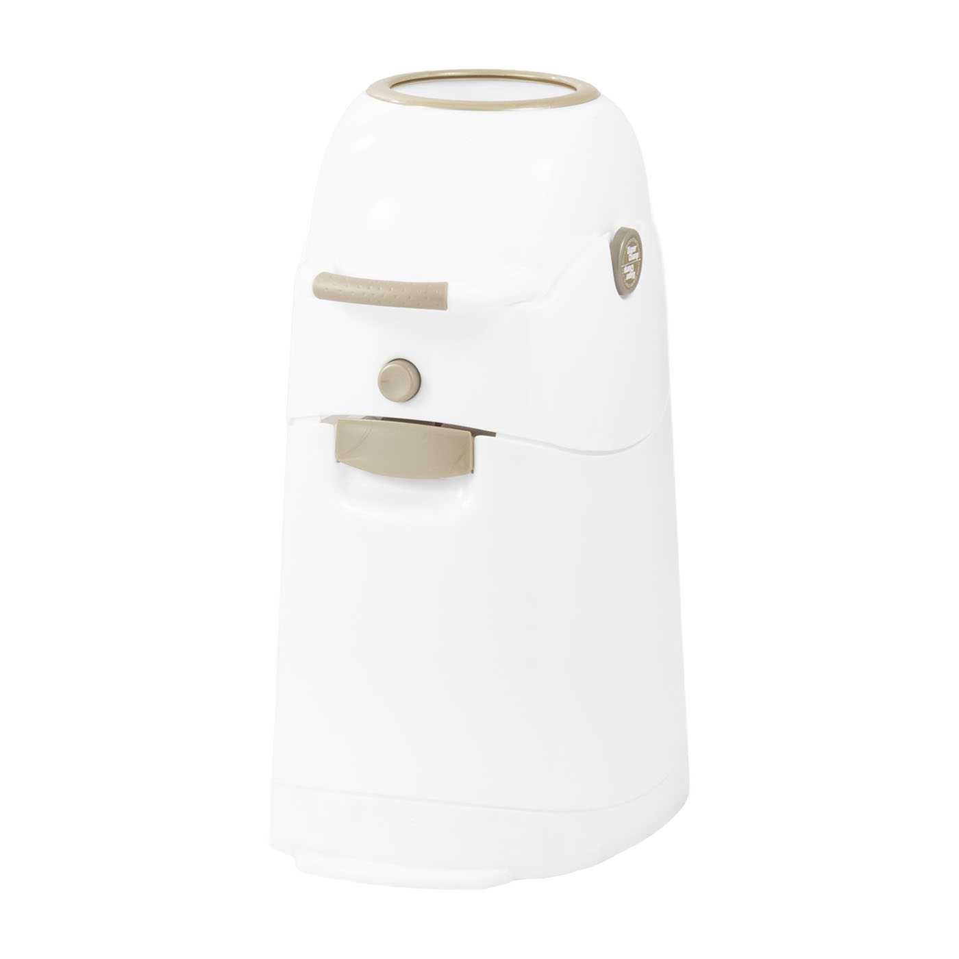 リトルプリンセスの「Diaper Champ くるっとポン」は、市販の20Lゴミ袋に対応している商品で、おむつは31枚収容可能。ニオイの漏れにくさの検証では、密閉時・開閉時に投入口からの漏れはほぼなかったものの、本体の接合部からややニオイ漏れがありました。加えて、投入口のパッキンにニオイ移りがあったのもネックです。捨てやすさの検証では、投入口が大きく開いたままになっているので手間なくおむつを入れられました。ハンドルを回すだけで開閉できるので、サッとスムーズに捨てやすいでしょう。またゴミ袋の着脱も簡単なので、おむつの数が多くても手間なく交換しやすいといえます。さらに、ツルッとした樹脂製かつ本体を細かく分解できるのも魅力。ただし、やや重さがあるのが難点です。年間コストは6,697円とお手頃な結果に。コストを抑えつつも、ある程度の容量がほしい人は候補に入れるべき商品です。