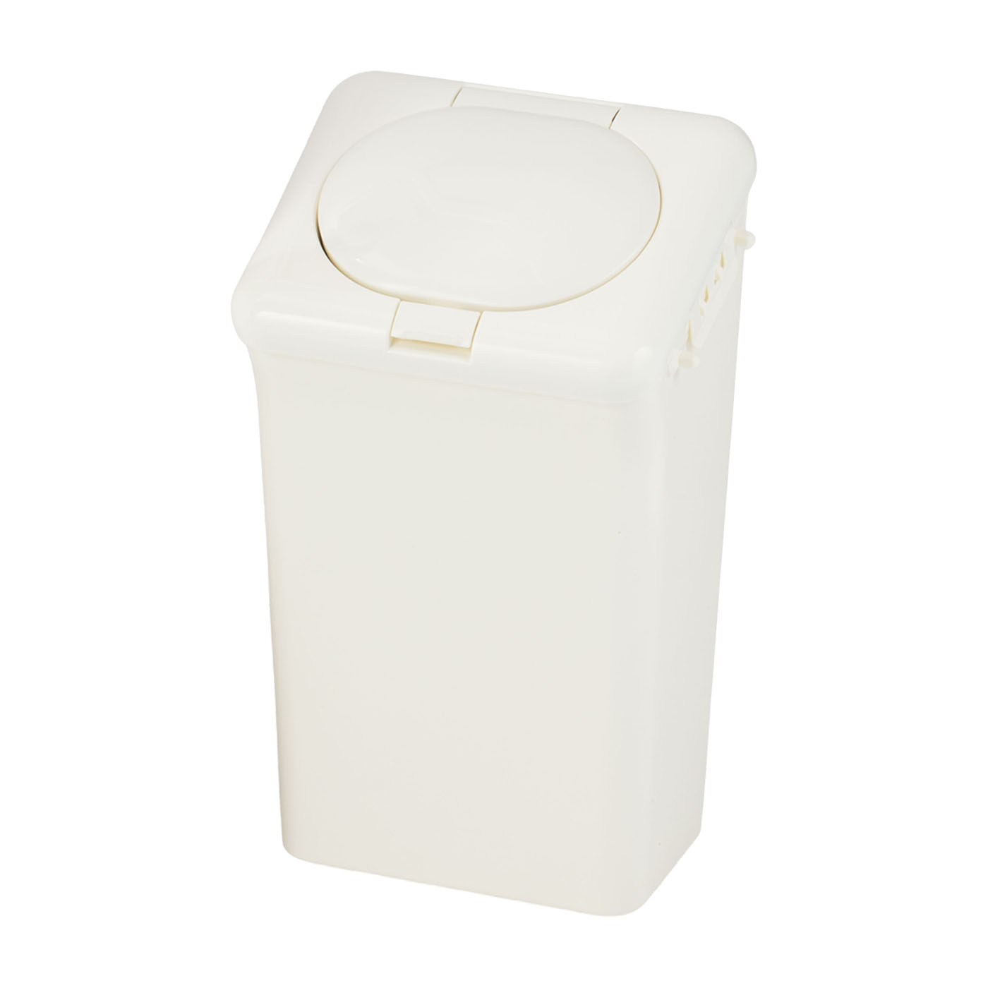2重の構造・パッキン付きでニオイが漏れにくいと謳う、リスの「HOME&HOME 開けても防臭ペール 20SN」。幅18.6cmのスリムな形状で、トイレや家具の間などにも設置しやすいのが魅力です。ニオイ漏れの検証では、密閉時でもフタの隙間から若干ニオイ漏れがありました。開閉時は、内フタが動くのと同時にニオイが漏れ出てきます。また、本体にニオイが移ってしまいました。おむつの捨てやすさは申し分ありません。フタはワンプッシュで開き、中フタも軽い力で動いてラクラク捨てられます。袋の取り付けホルダーもあるので、セットは簡単です。ただし、本体にやや高さがあるので、底の掃除はしづらい印象。しかし、本体が約1kgと軽量で、フタも取り外せて丸洗いしやすい点は魅力です。年間コストは3,897円で、おむつの収容量は24枚でした。コストを抑えたい人には魅力的な商品です。ただし、おむつ替えの頻度が高い時期だと容量が足りない可能性があるので注意しましょう。