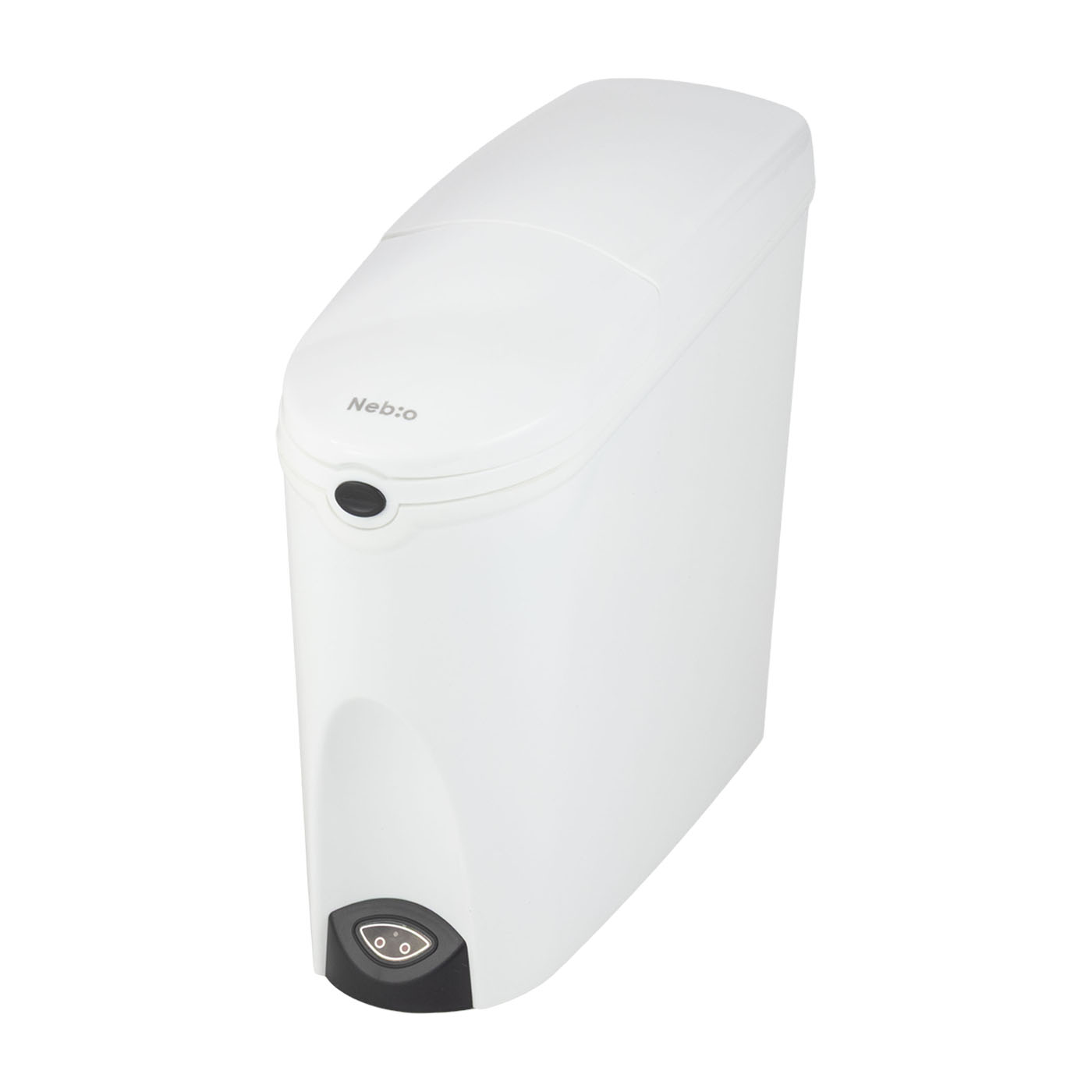 中塚小児車工業所の「ネビオ さわらずポイっと センサーペール」は、センサーでフタが自動開閉するゴミ箱。スリムな形状で、トイレなどの狭いスペースにも置きやすいのが特徴です。ニオイの漏れにくさの検証では、密閉時のニオイ漏れはないものの、開閉時にややニオイを感じました。ゴミ箱へのニオイ移りはなかったので、定期的に拭き掃除をすれば長く使えるでしょう。しかし、本体が約2kgあり、フタの取り外しもできないので手入れはしづらい印象です。おむつの捨てやすさの検証では、フタに触れずに捨てられる点が高評価のポイントに。フタは2秒程度開いた状態でストップするので、指を挟むリスクも少ないでしょう。また、ゴミ袋の取り付けホルダーがあり、袋の付け外しも簡単です。年間コストは4,196円とお手頃。機能的なゴミ箱ながら3,000円未満で購入でき、市販の袋を使えるのでコストを抑えられます。おむつの収容量は20枚で、おむつの使用量が多い時期だと足りない可能性も。そのため、6か月以降の赤ちゃんがいる人やゴミ箱を複数個使う人なら、使いやすい商品といえます。