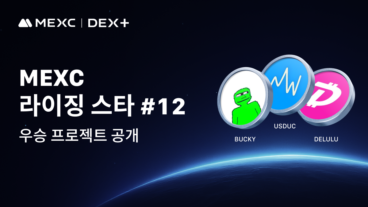 BUCKY, DELULU, and USDUC가 MEXC 라이징 스타 #12에서 우승하고 상장 자리를 확보한 것을 축하합니다!