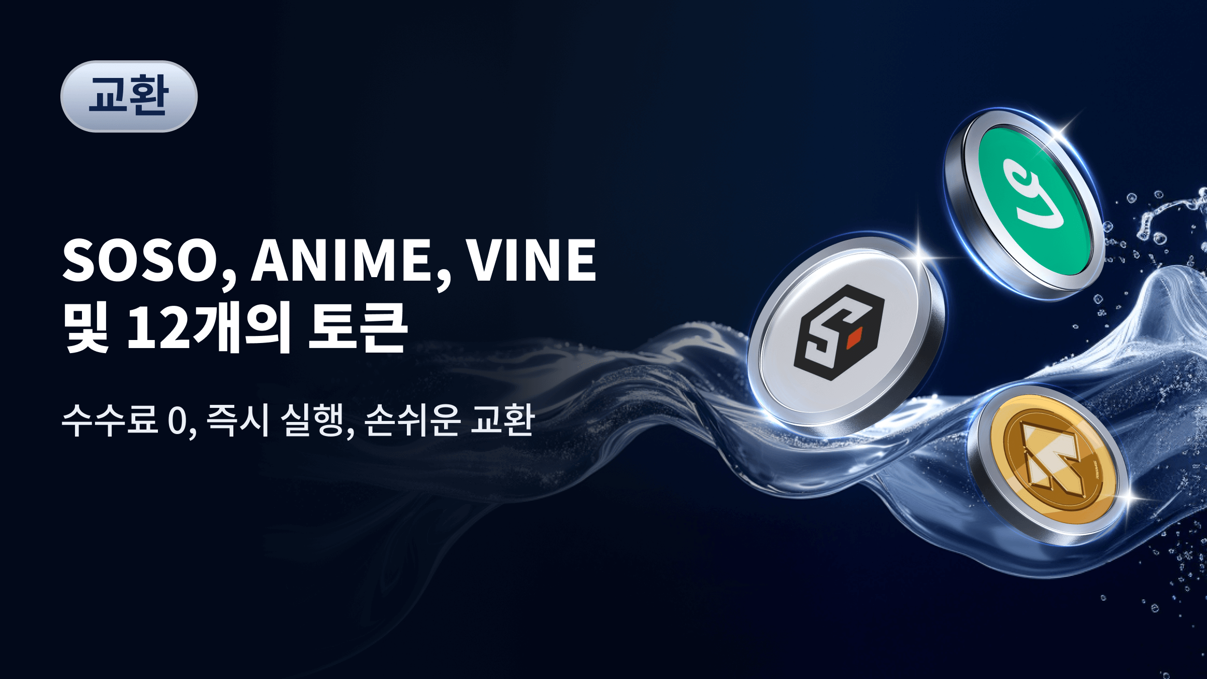 2025년 1월 27일 19:00 (KST)부터 MEXC 교환에서 SOSO, ANIME, VINE 및 기타 12개의 토큰을 이용할 수 있게 됩니다!