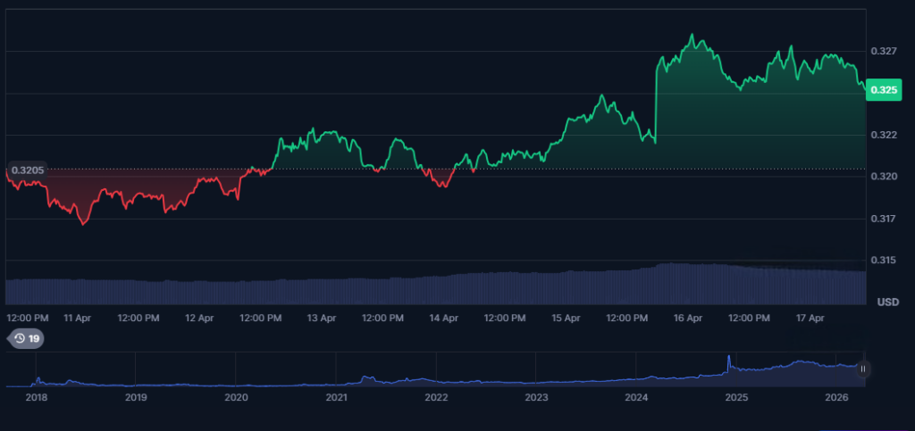 The key levels to watch are $0.320 support and $0.330 resistance. A decisive move beyond these levels, supported by volume, will determine the next trend direction.