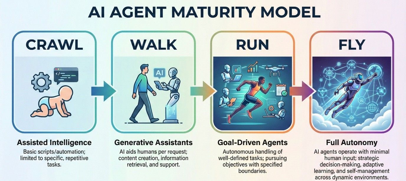 Crawl, Walk, Run, Fly - The Four Phases of AI Agent Maturity