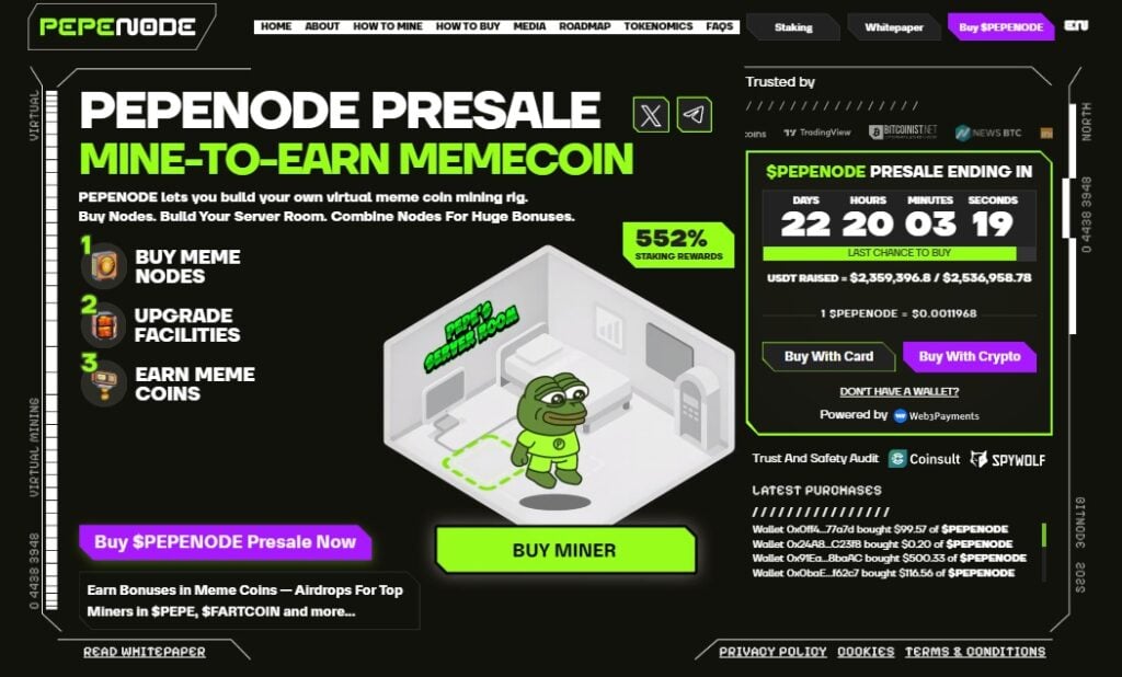 Pepenode is positioned as a utility-focused meme coin, designed to stand out as an alternative to $DOGE. The project is currently in its presale phase at a low entry price and has already attracted nearly $2.4 million in funding, with only 22 days remaining before its conclusion.