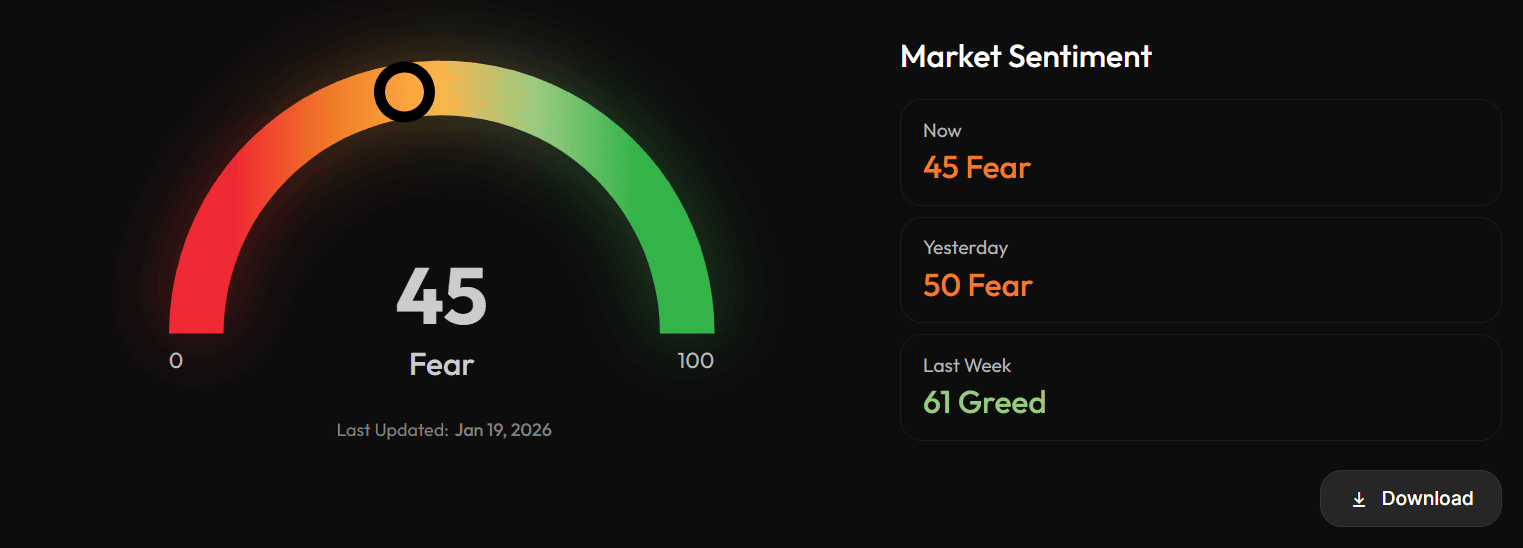 The Fear and Greed Index, which only recently hit a local high from early October 2025, has sagged 11 points relative to last week and five points in the last 24 hours.
