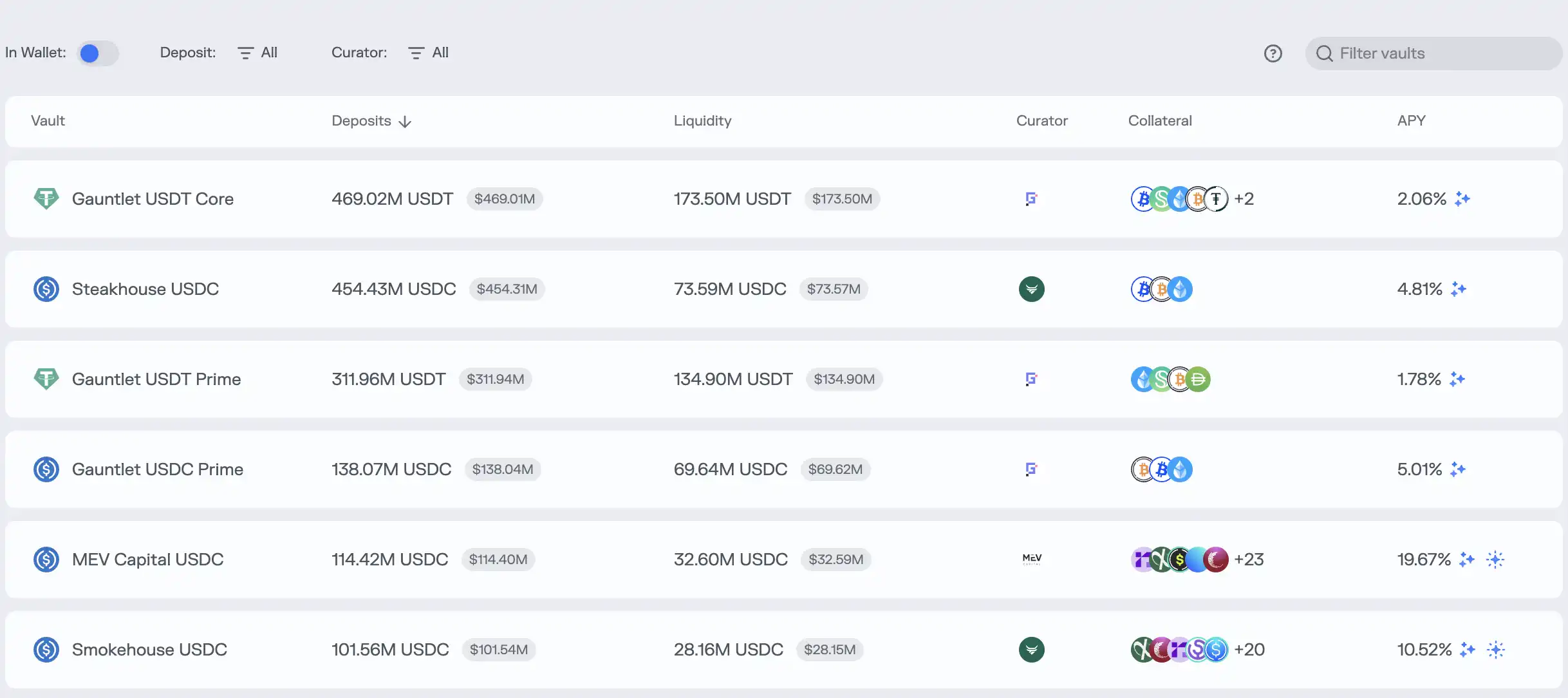 Therefore, they introduced the Curator model. Instead of depositing money into a single pool, users choose individual "vaults" managed by the Curator. Users deposit money into the vaults, and the Curator is fully responsible for how to invest and generate interest on that money.