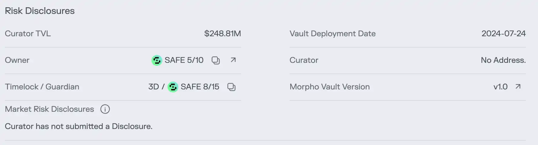 The manager of the vault did not even submit a risk disclosure. Inexperienced users may find it difficult to assess the security of the interest-bearing assets at the bottom of the vault.