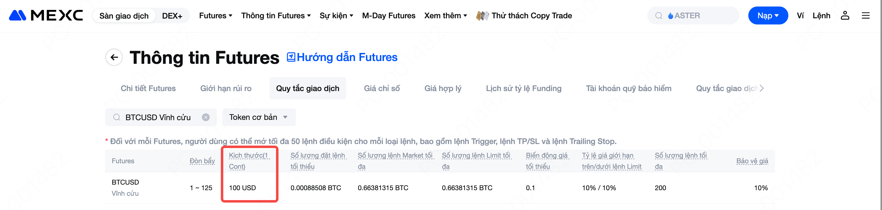 Mỗi BTC Coin-M Futures có kích thước là $100, và mỗi ETH Coin-M Futures có kích thước là $10. Kích thước khác nhau tùy theo từng cặp Coin-M Futures. Vui lòng tham khảo thông tin mới nhất trên trang Hướng dẫn giao dịch Futures của MEXC để biết chi tiết.