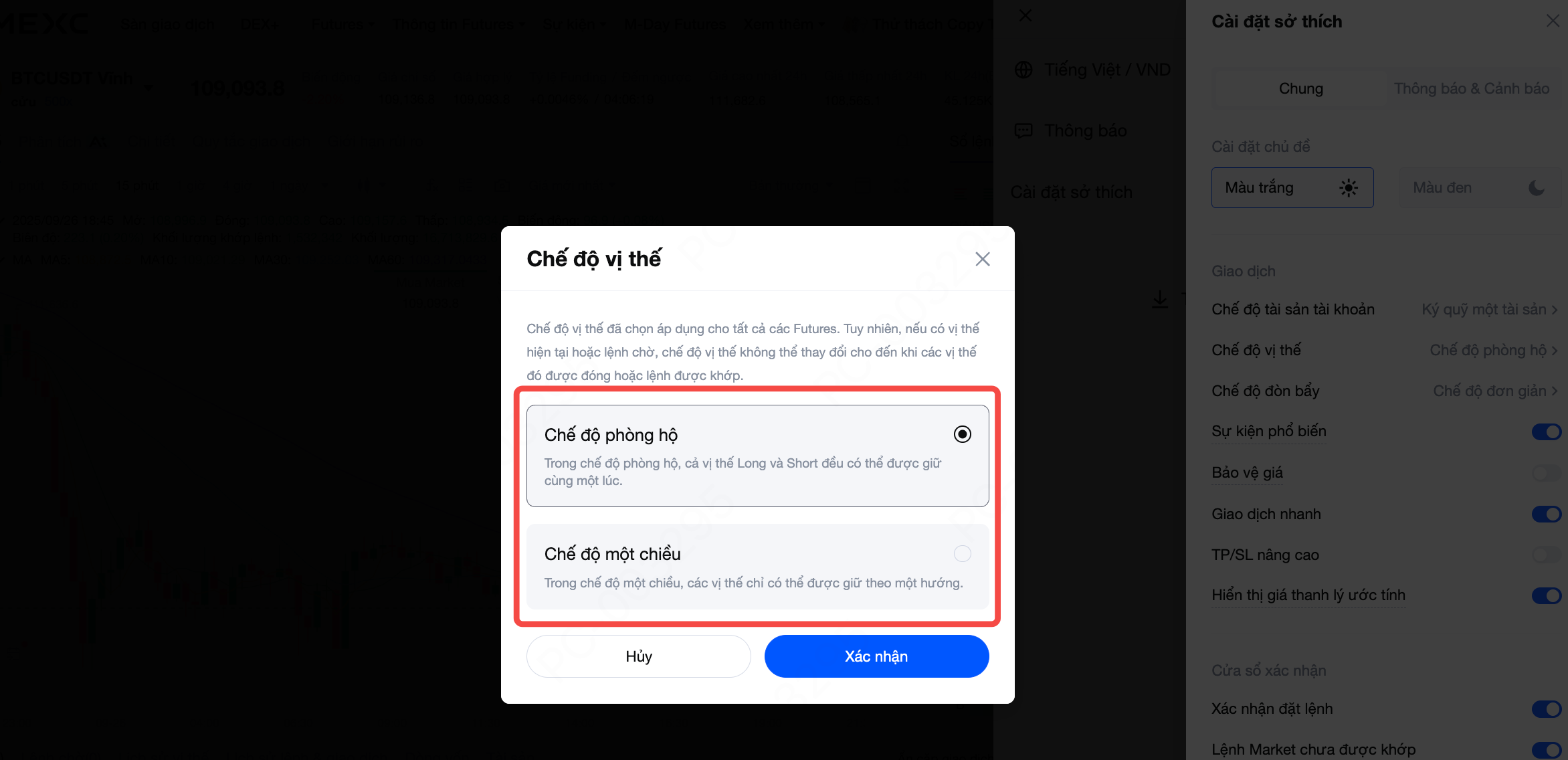 Khi giao dịch Futures trên MEXC, một cài đặt quan trọng thường bị bỏ qua là chế độ vị thế. Điều này quyết định bạn có thể nắm giữ đồng thời cả vị thế Long và Short trong cùng một cặp Futures hay không. MEXC cung cấp cho nhà giao dịch hai lựa chọn: chế độ một chiều và chế độ phòng hộ. Hiểu rõ sự khác biệt cơ bản giữa hai chế độ này và chọn chế độ phù hợp với chiến lược là điều cần thiết để quản lý rủi ro hiệu quả, giúp thực hiện các phương pháp giao dịch phức tạp hơn.