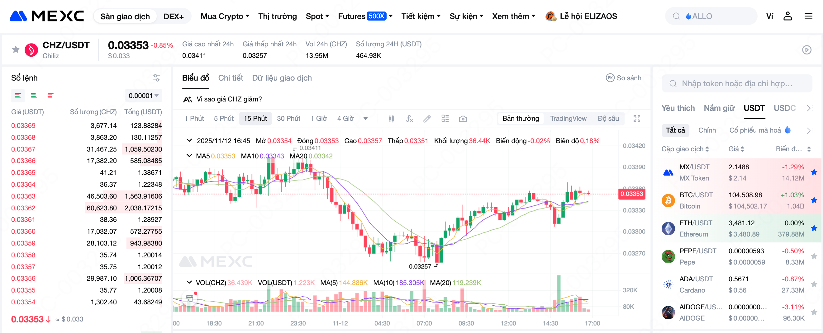Hiện tại, CHZ khả dụng cho cả giao dịch Spot và Futures trên MEXC, cho phép bạn giao dịch với mức phí siêu thấp.