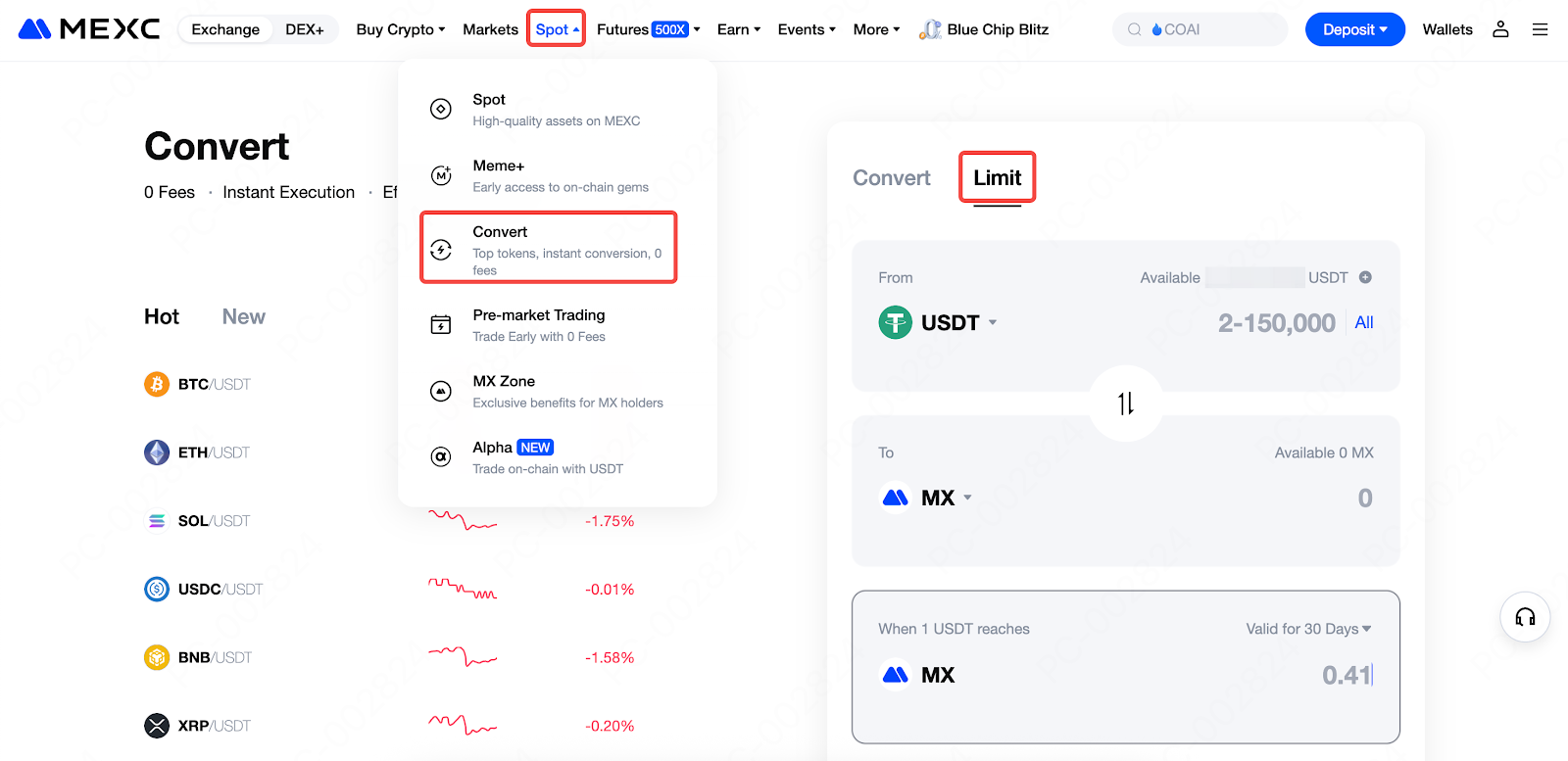 1. 如何使用 MEXC 閃兌限價交易