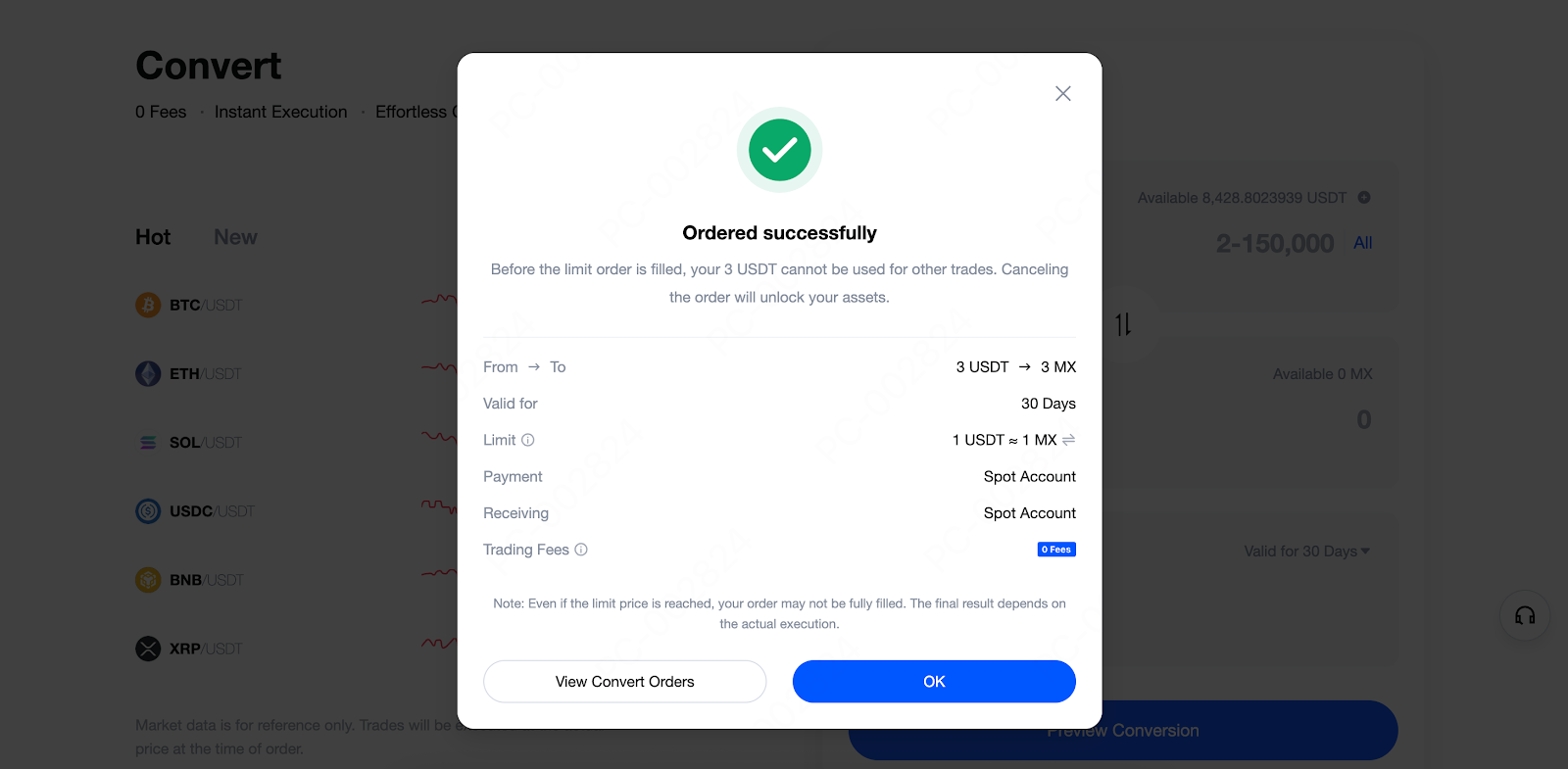安全可控:限價單掛單期間資金凍結在帳戶中,不會被系統自動用於其他用途。若您決定撤銷訂單,可立即解鎖資產並恢復使用。