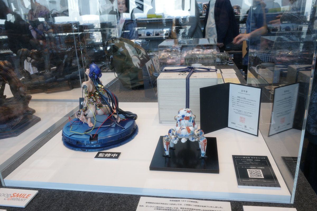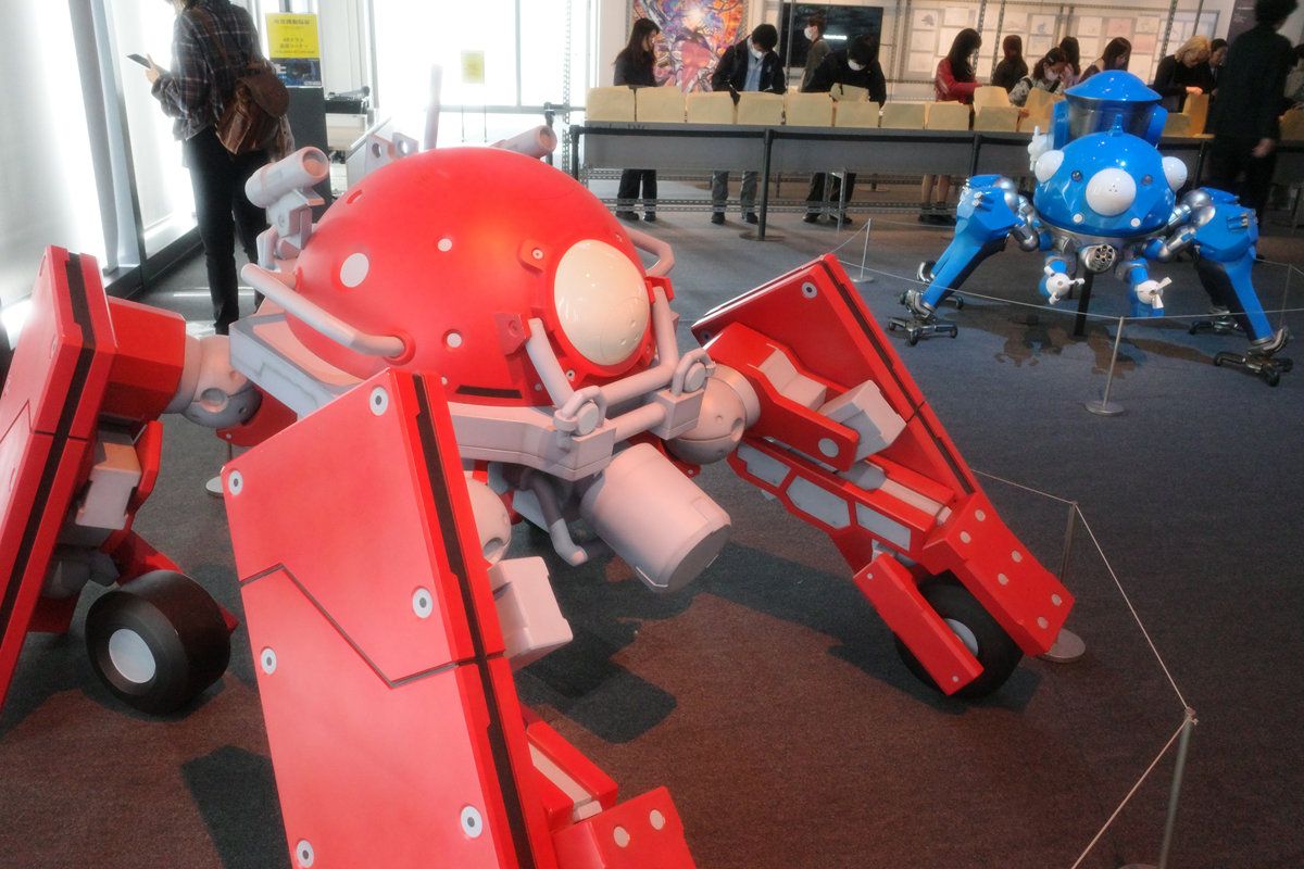 此外還有多位藝術家以攻殼機動隊為發想的作品,其中也包括知名插畫家「空山基」製作的金屬版草薙素子的雕像。另外還有電影與動畫版粉絲熟悉的藍色版本攻殼車(塔奇克瑪)與ARISE版的紅色攻殼車的大尺寸立體模型。